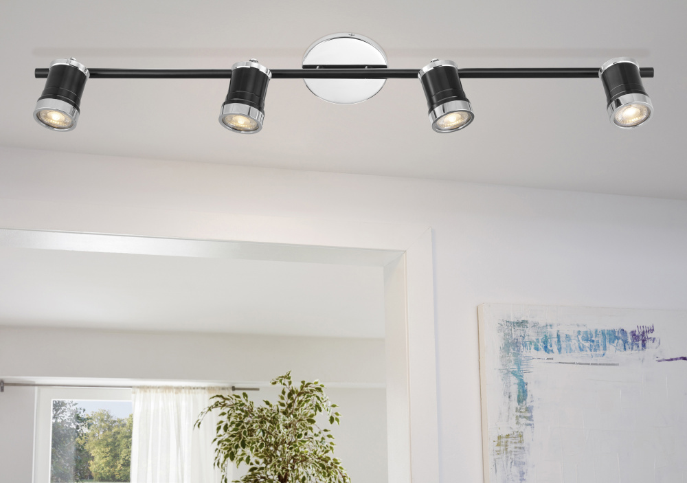 4 LT Fixed Track Light w/ Black & Chrome Finish w/ Black & Chrome Adjustable Lamp Heads