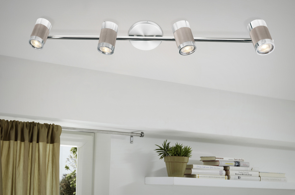 4 LT Fixed Track Light w/ Chrome Finish & Chrome & Brown Adjustable Lamp Heads