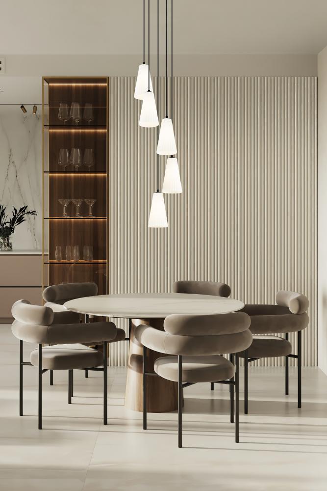 The elongated fluted shape of the Farrell series provides plenty of light in a slim silhouette. Available as a pendant as well as a wall sconce, Farrell can be ordered in a choice of Brushed Nickel, Matte Black, and Modern Gold finishes.