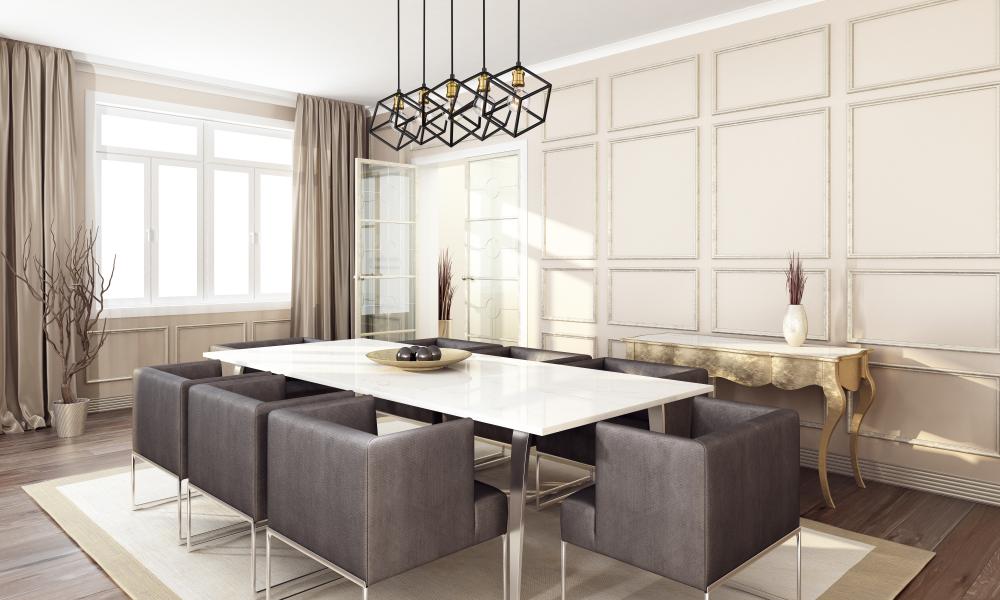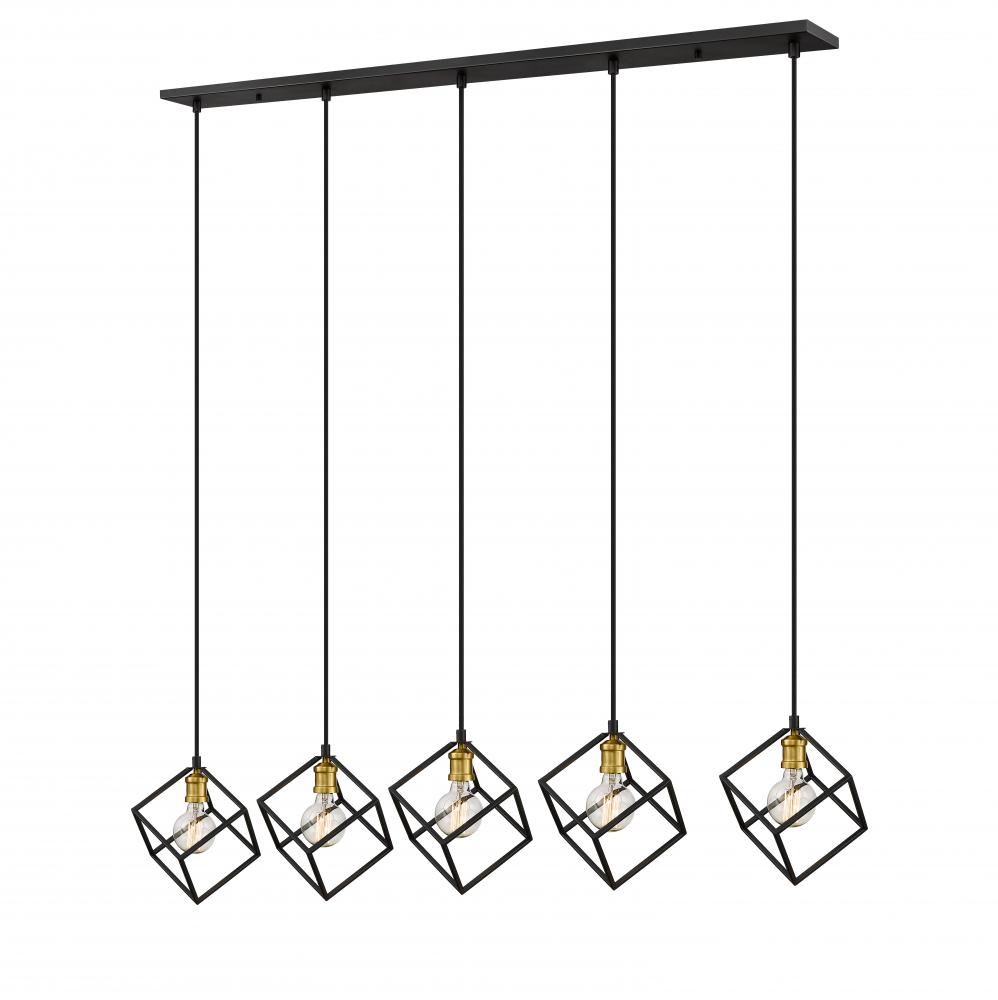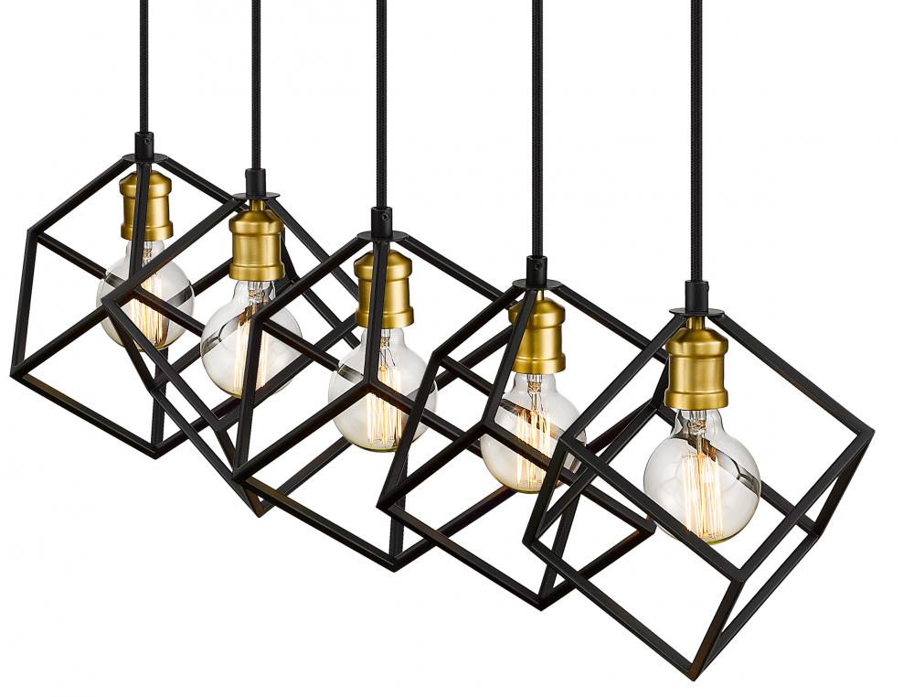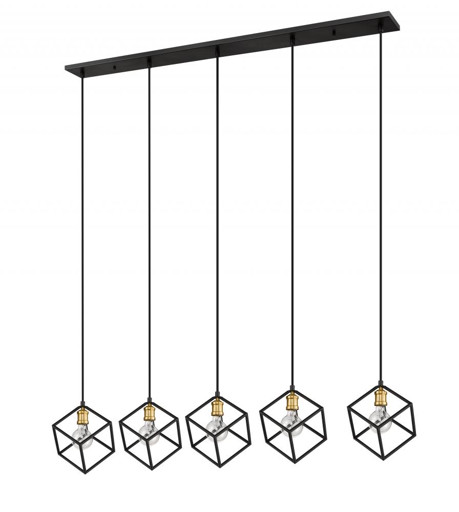 Balance and harmony combine with clean, modern lines in this two-tone five-light island/billiard light for your home. Its fashioned in a bronze and olde brass finish with cube-shaped shades for a look thats contemporary yet timeless. Its a dynamic design that catches the eye in any dining room, foyer, kitchen, or entertainment room.