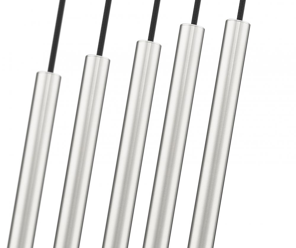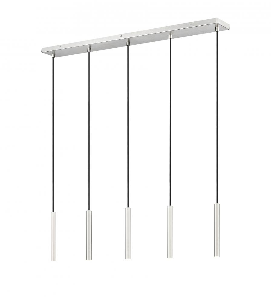 Embrace the sleek simplicity of this modern five-light linear chandelier. Its the perfect choice for a kitchen island or dining table, offering a slim, rectangular canopy and slender housings, each with integrated LEDs and a cool brushed nickel finish. Energy efficient and dimmable, its the perfect solution for a linear space within your home.