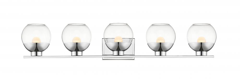 Design to impress with the captivating appeal of this chrome steel and clear glass five-light vanity light. A perfect choice for framing a master bath vanity, its alluring round orb-shaped shades temper energy-saving lighting from integrated LED technology.
