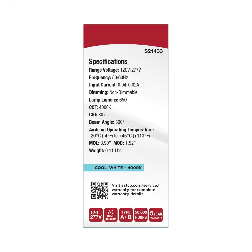 SATCO NUVO's S21433 CFL replacement lamp delivers reliable, energy-efficient performance in a compact and versatile PL shape. This 5-watt model is designed to replace 13-watt CFLs, providing a 4000K cool white light with a G24d base. A+B dual mode ball