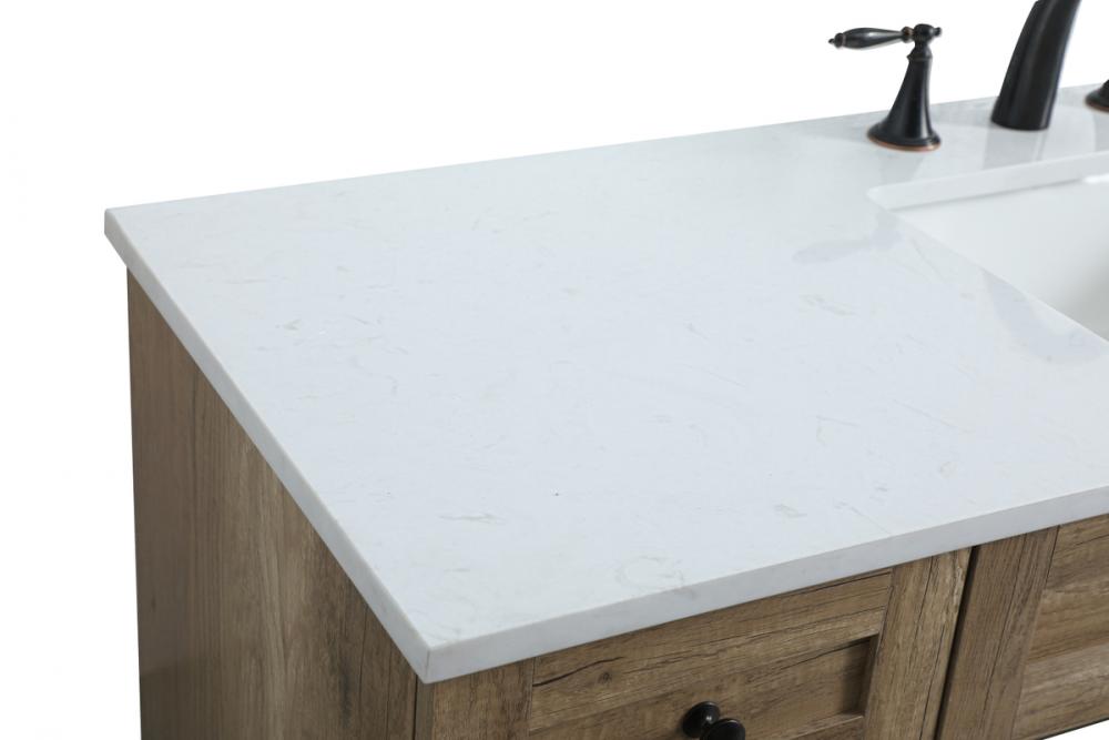 Immerse yourself in luxury with the undermount porcelain sink, elegantly paired with a durable Calacatta look engineered marble stone top. This combination not only exudes sophistication but also promises lasting durability.