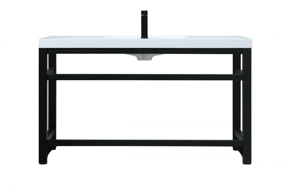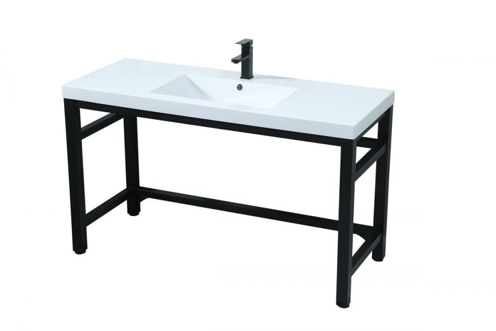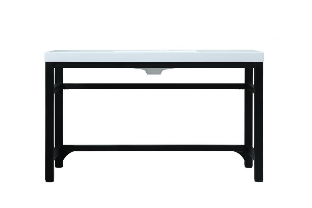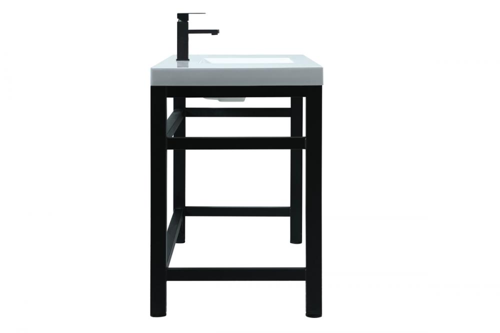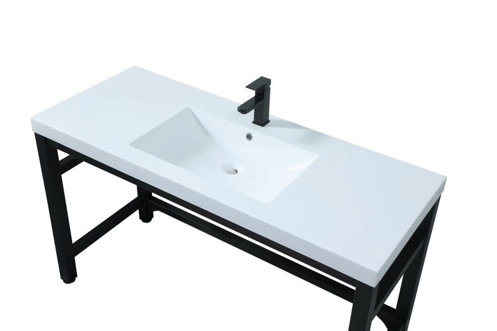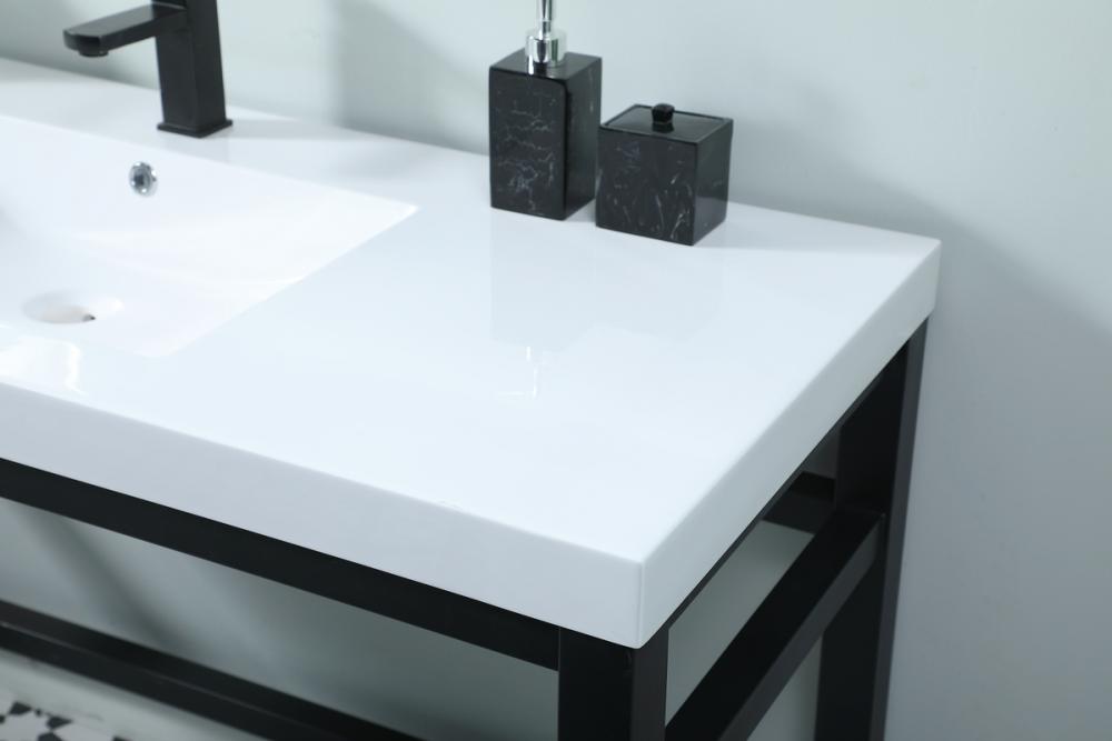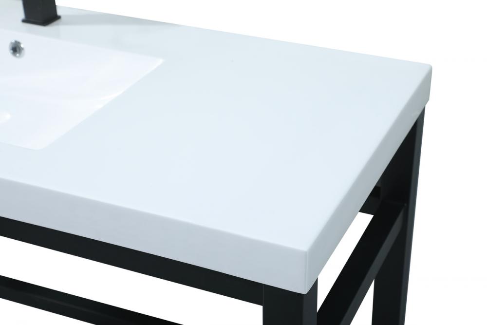The modern design of our vanity combines sleek black iron metal legs with a resin countertop, creating a chic and stylish addition to your bathroom decor.