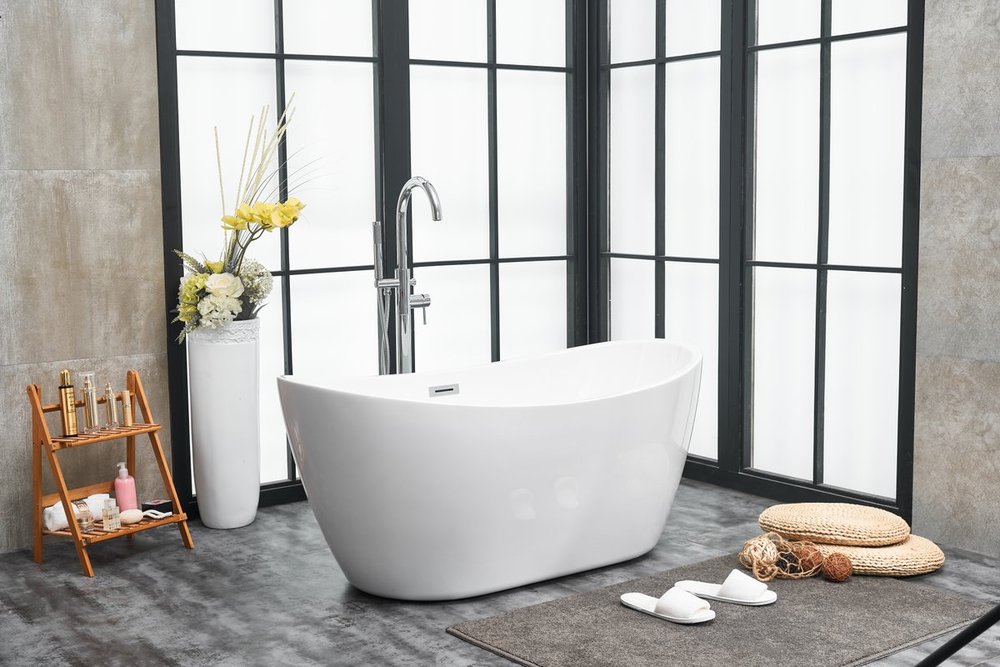 The curvature of this 54" double slipper style bath tub allows for comfortable seating--and wouldn't you want to be as comfortable as possible while having a relaxing soak? The glossy white finish adds peaceful modernity to any bathroom--discard all your worries and bathe in elegance.