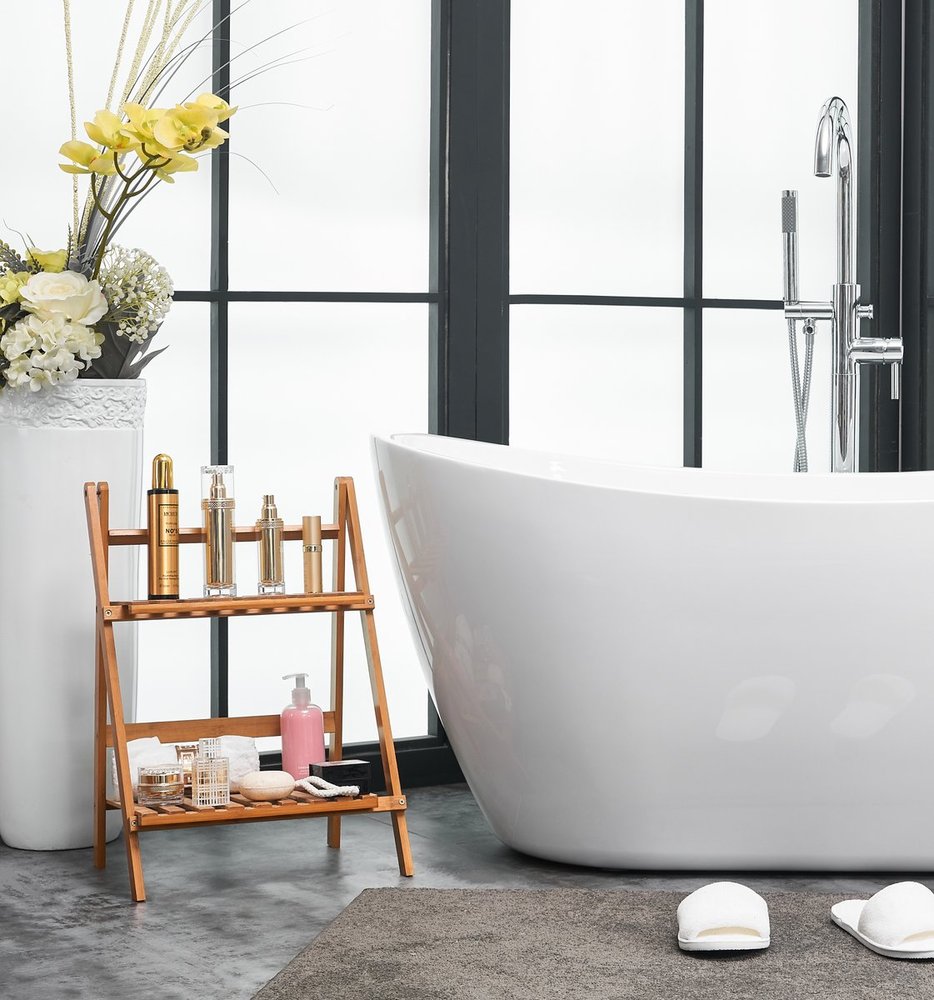 Adjustable leveling feet are included to stabilize the tub on any surface