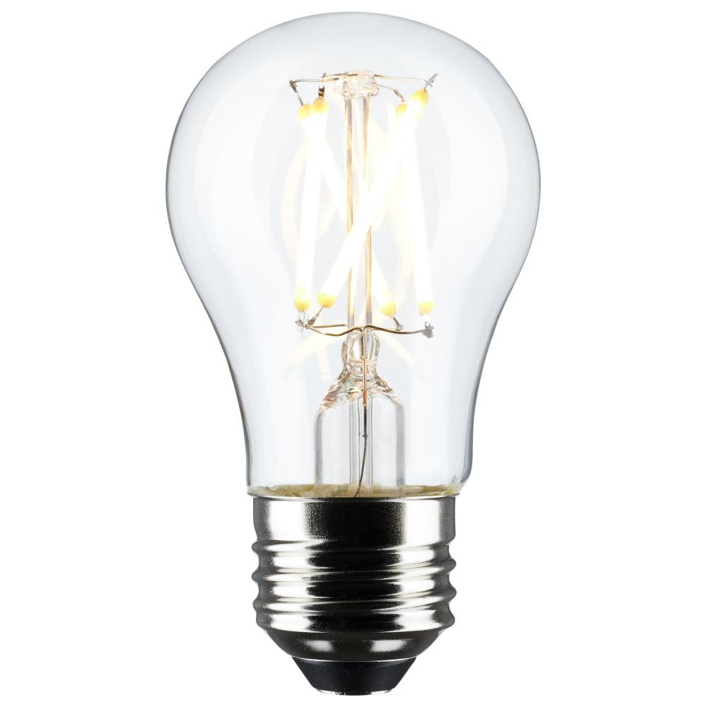 Satco's 5.5-watt clear, A15 bulb with a medium base is dimmable and offers warm white light and a 300 degree beam spread. The carded packaging is suitable for retail display. Elegant and long-lasting, this clear bulb delivers 15,000 hours of exceptiona