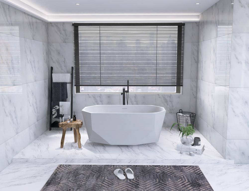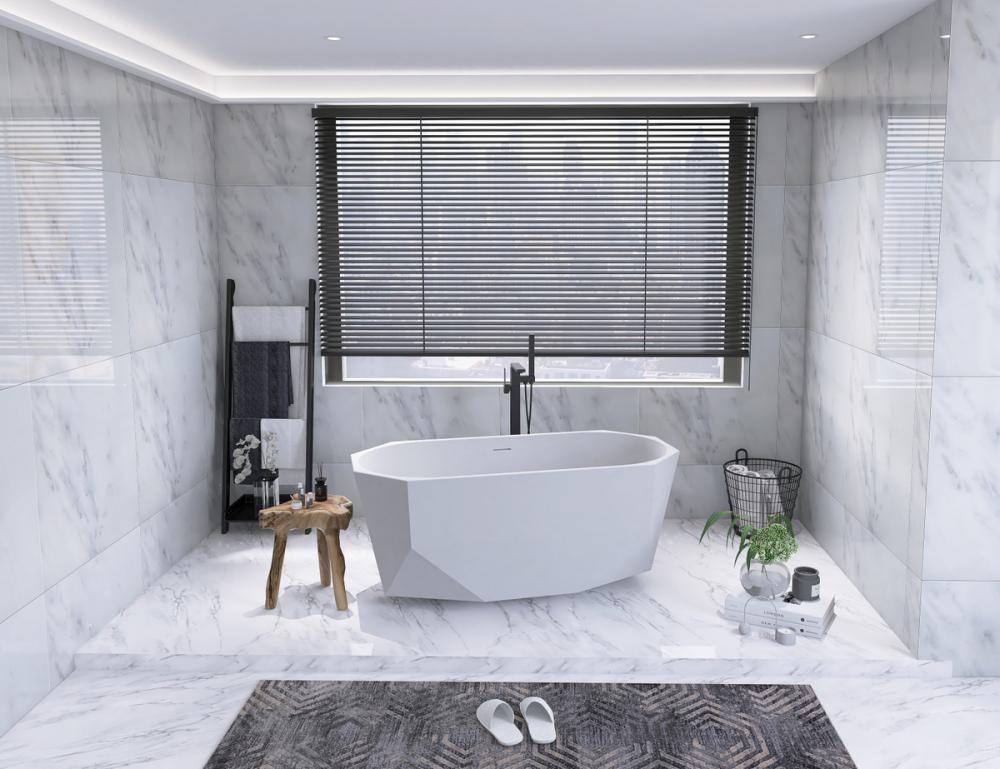 The exterior of our bathtub features a unique diamond-cut pattern that enhances its visual appeal.