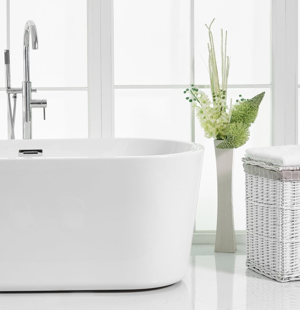 The curvature of this 53" roll top style bath tub allows for comfortable seating--and wouldn't you want to be as comfortable as possible while having a relaxing soak? The glossy white finish adds peaceful modernity to any bathroom--discard all your worries and bathe in elegance.