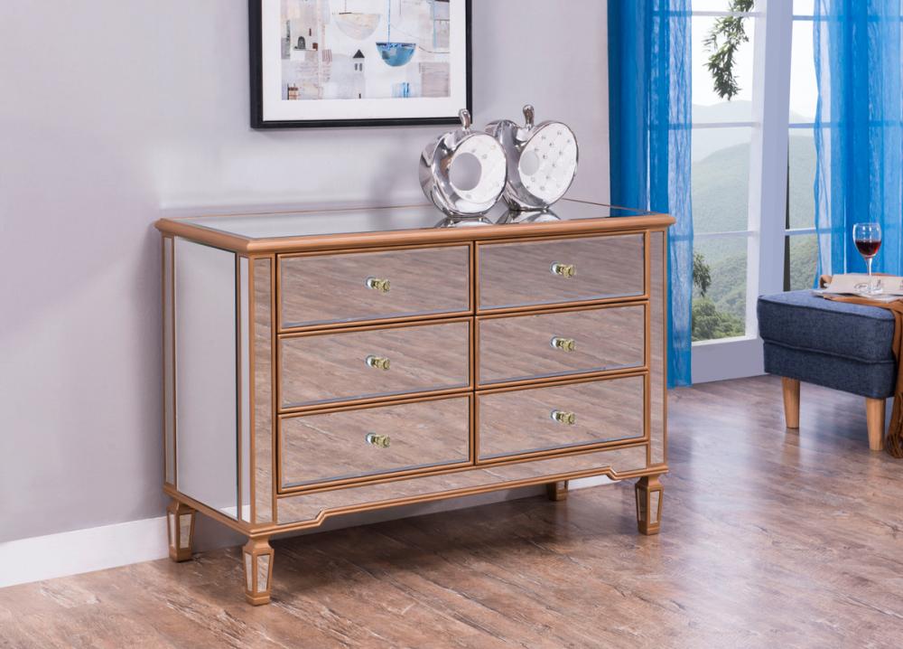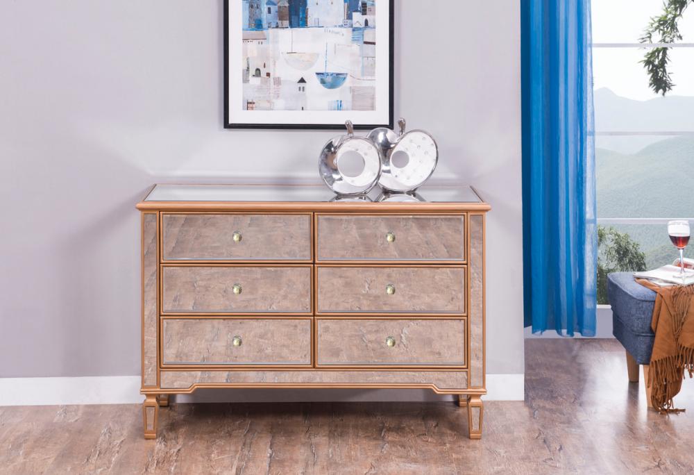 6 Drawer Dresser 48 in. x 18 in. x 32 in. in Gold paint