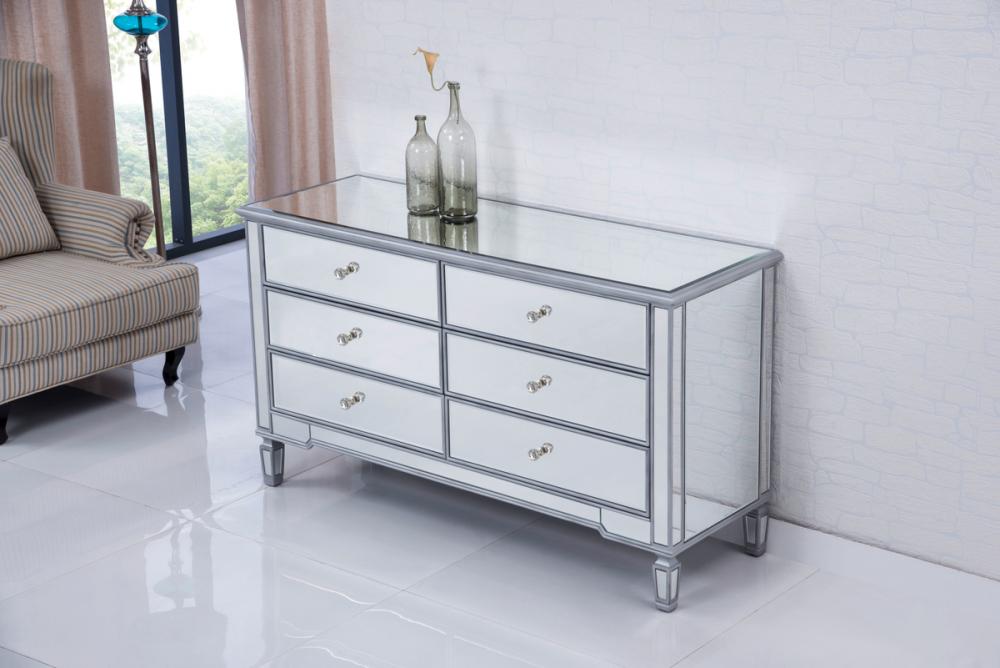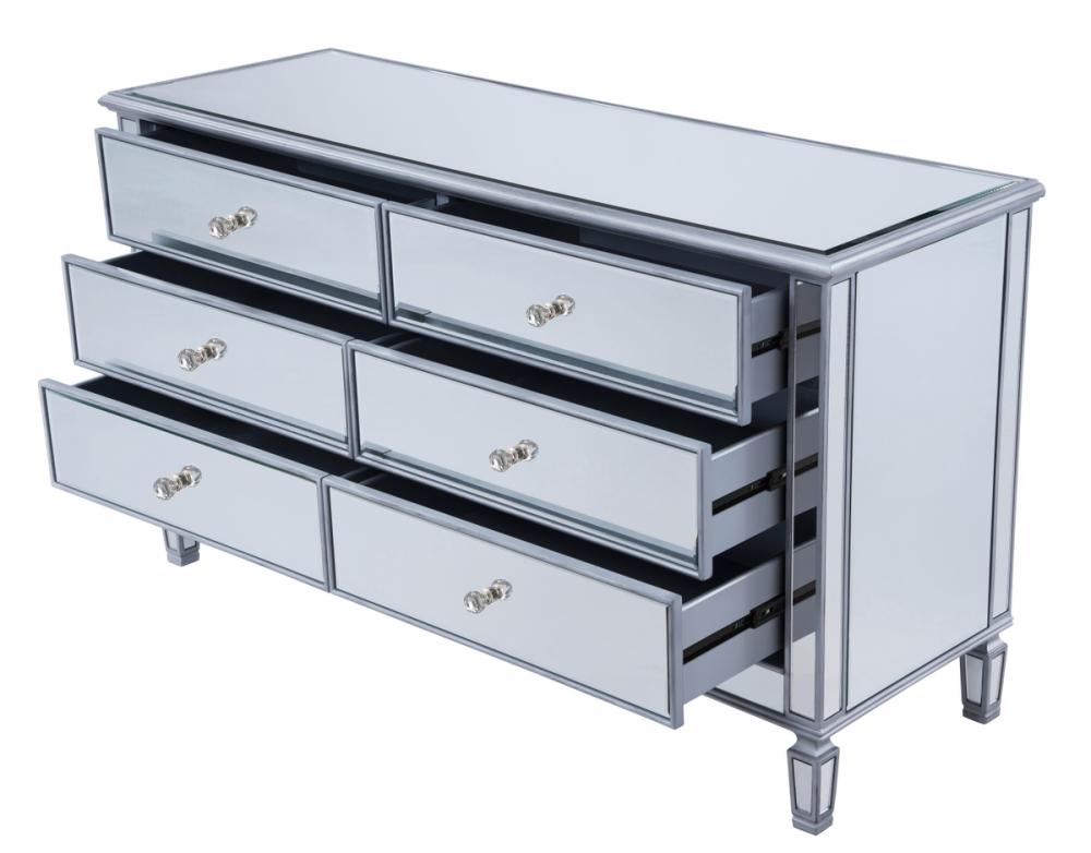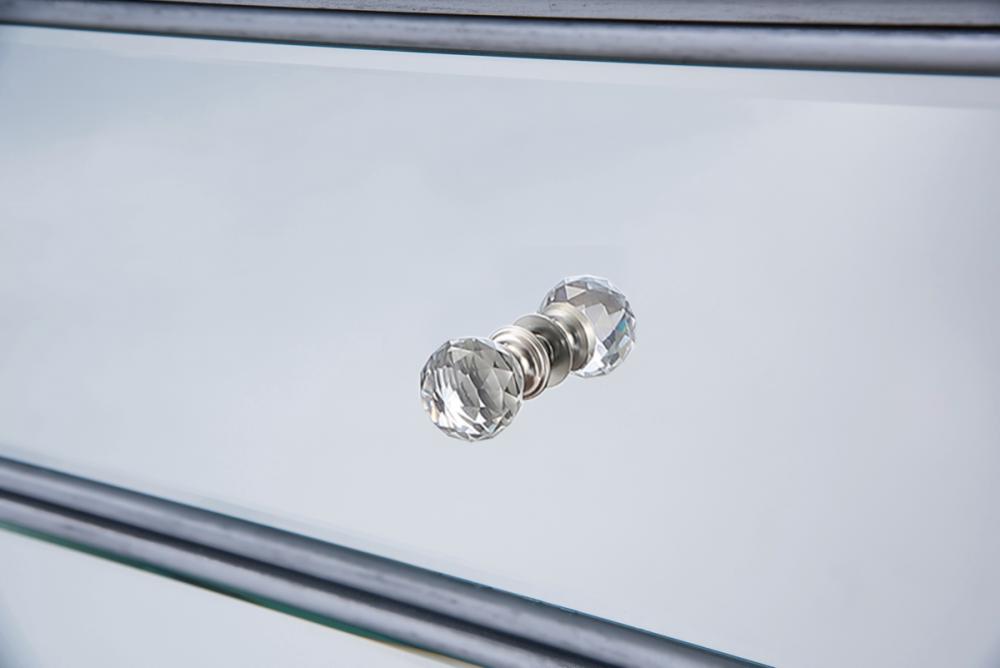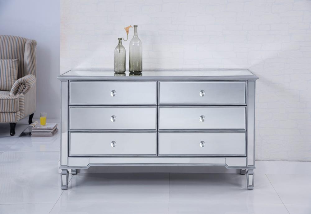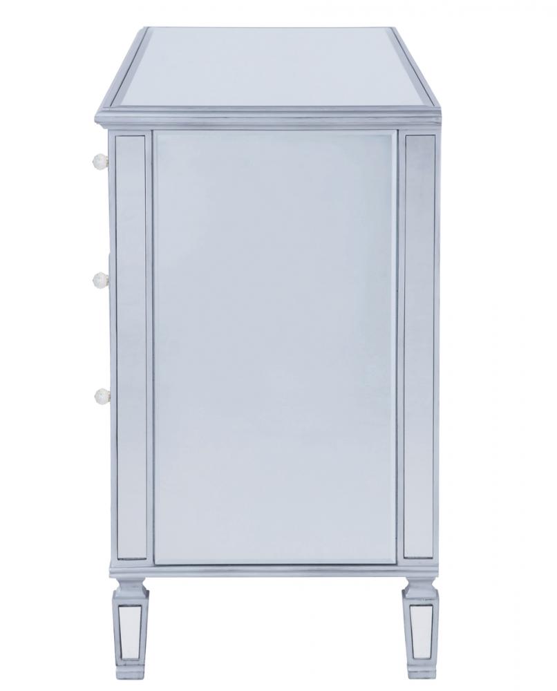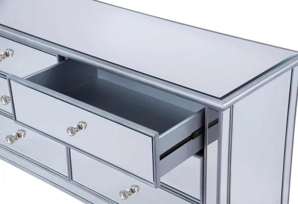 Its hand-rubbed silver finish and highest grade mirrored panels naturally capture the eye, and yet it provides a large amount of storage space for all your clothes and memorable treasures.