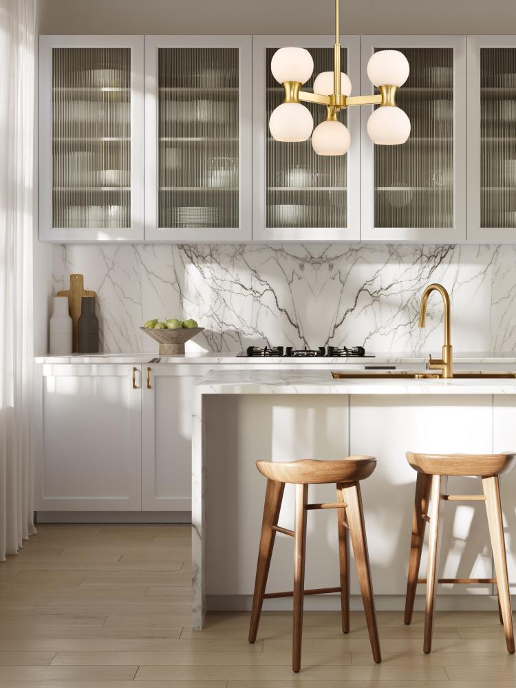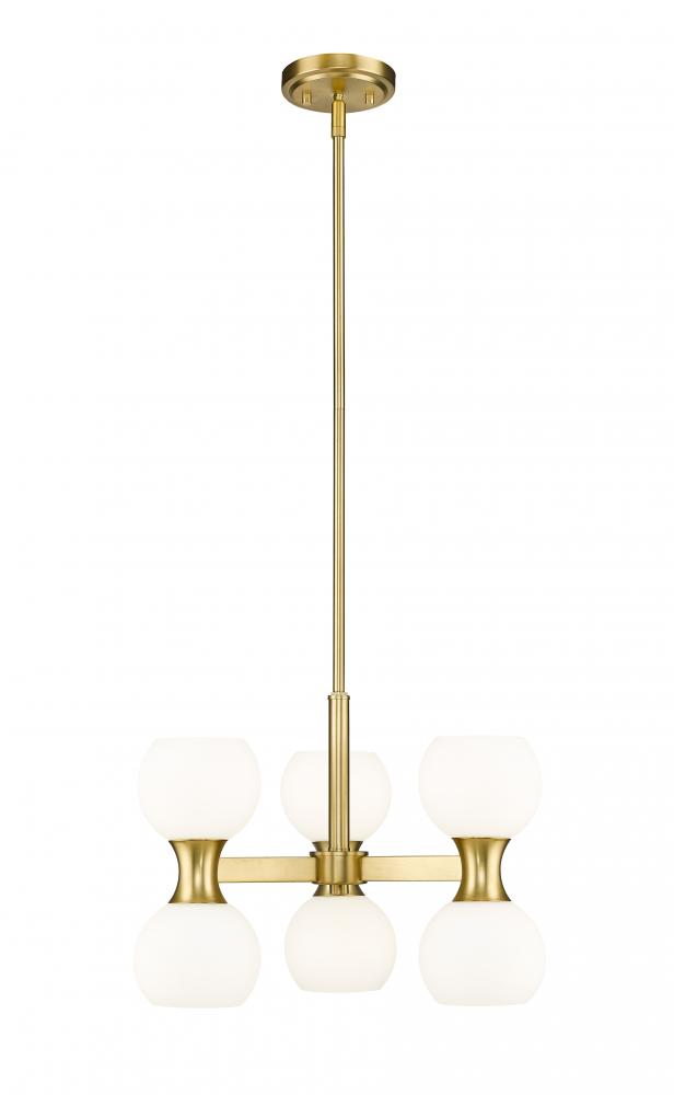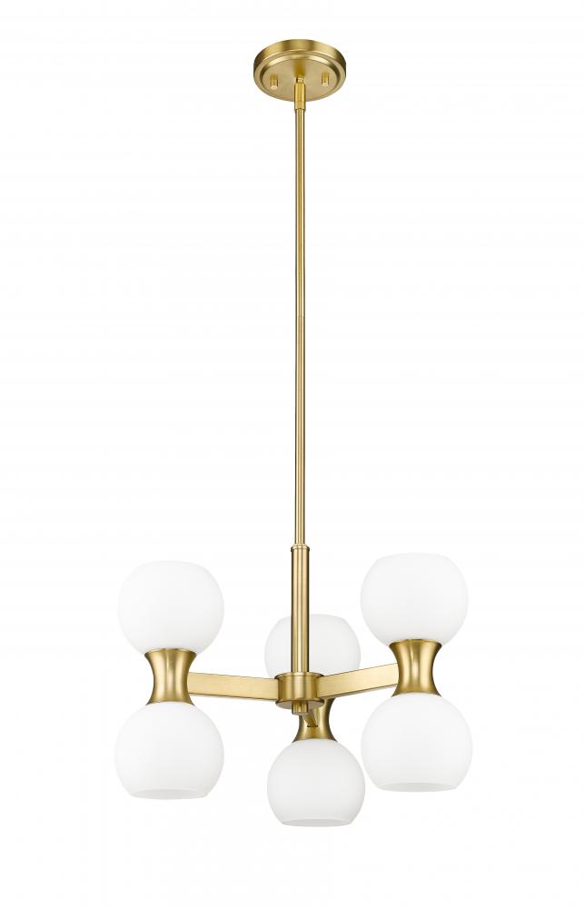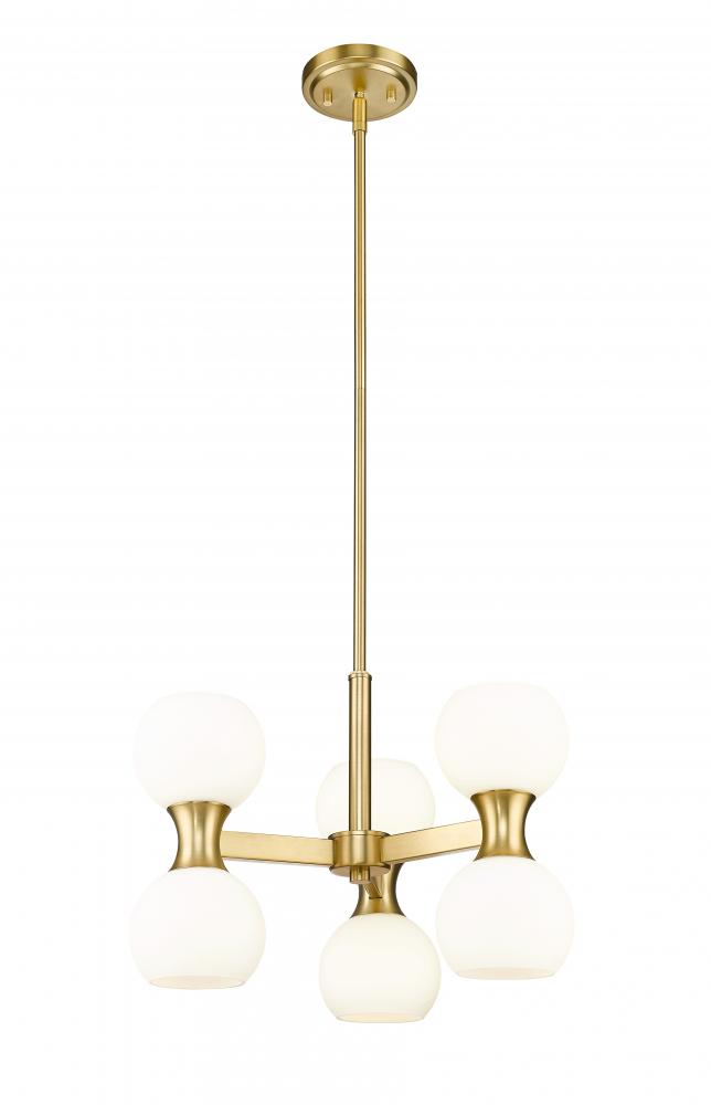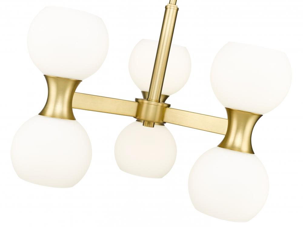 Illuminate a transitional or modern space in pure style with this six-light chandelier featuring a lush modern gold steel frame and delicate matte opal glass globe shades. An example of the charming mix of Art Deco and Mid-Century Modern, it adds unmistakable personality to a dining space, living area, or entryway. Embrace the basic yet standout look of uplighting and downlighting in one stellar fixture from the Artemis collection that becomes a focal point in any setting.