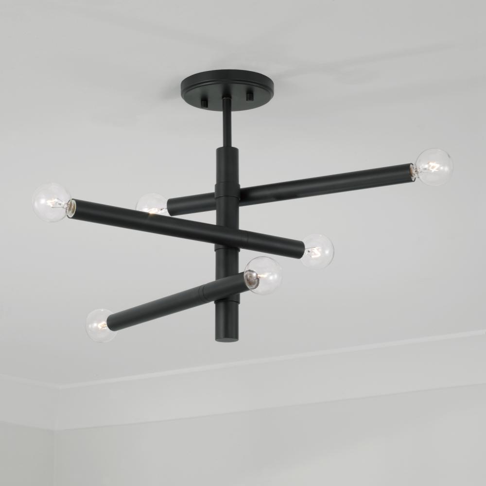 Defined by sleek lines and a modern form, the Zane Semi-Flush brings sophisticated sputnik style to any space. The neutral tone of the Matte Black finish punctuates this minimalist luminaire.