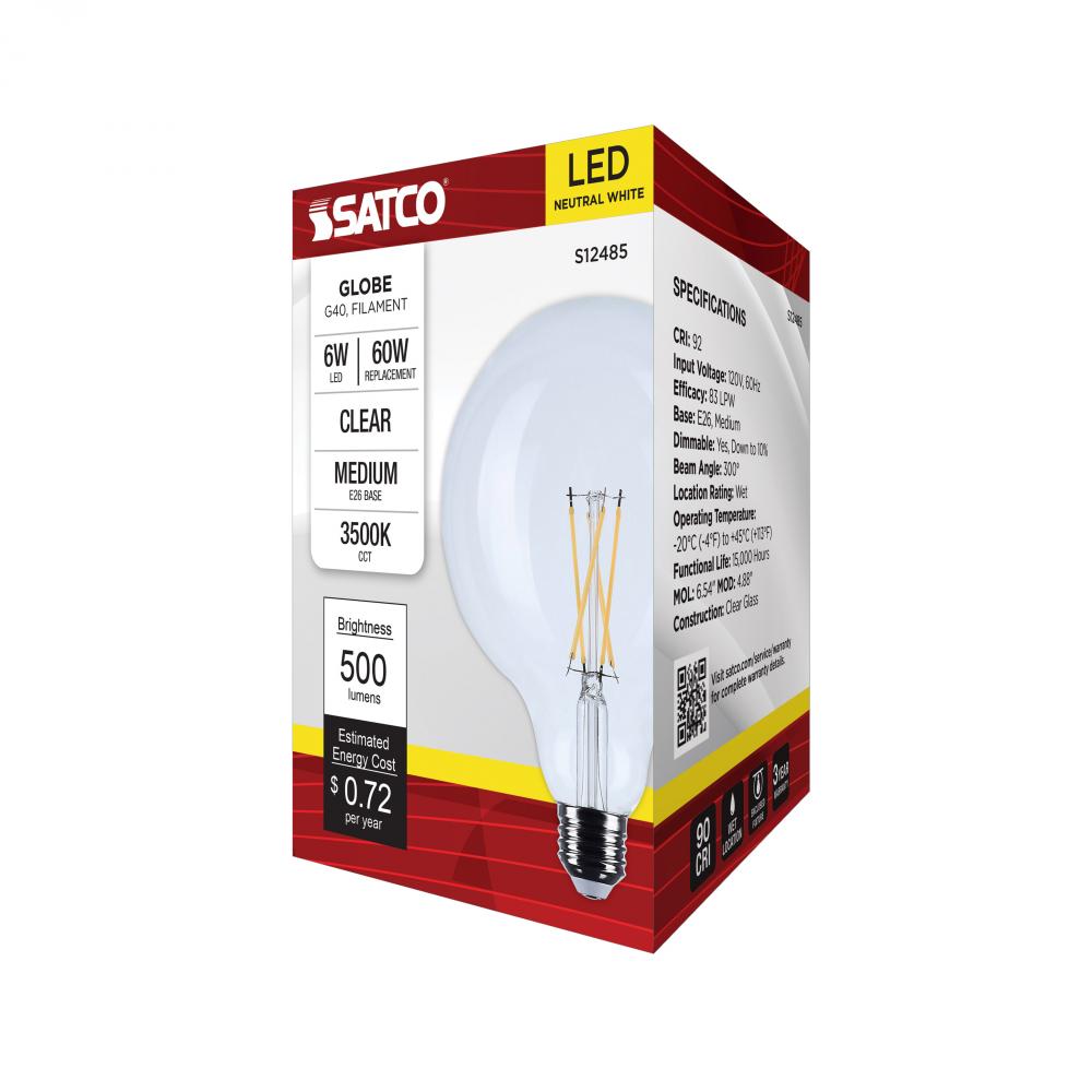 Satco's S12485 6-watt LED lamp is traditional, yet contemporary with its vintage style and energy saving LED technology. Elegantly illuminate any room in the house with this dimmable, globe shaped bulb. Sophisticated and modern, this lamp delivers 15,0