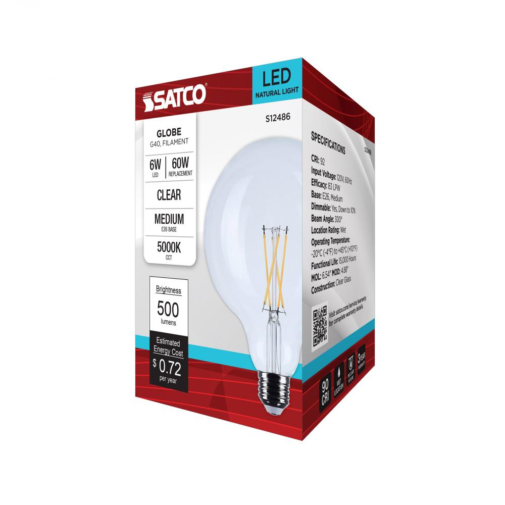 6 Watt G40 LED; Medium Base; Clear; 5000K CCT; 120 Volt