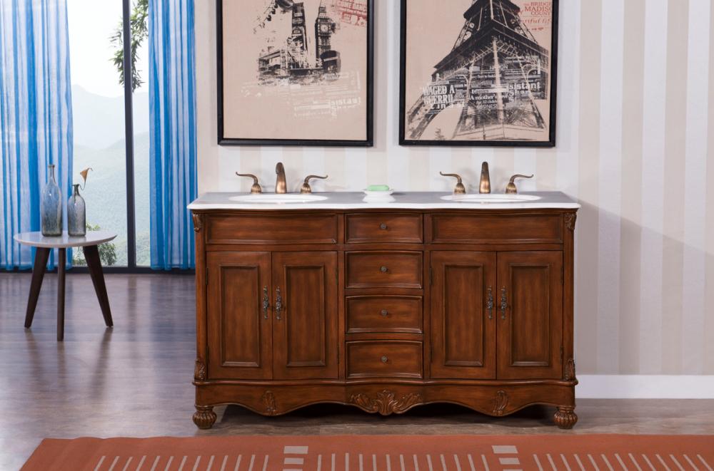 Constructed of kiln-dried solid wood and MDF · Faucets shown are not included. Please note that due to the natural characteristics of the stone, the color and/or pattern of each countertop may vary from the pictures.