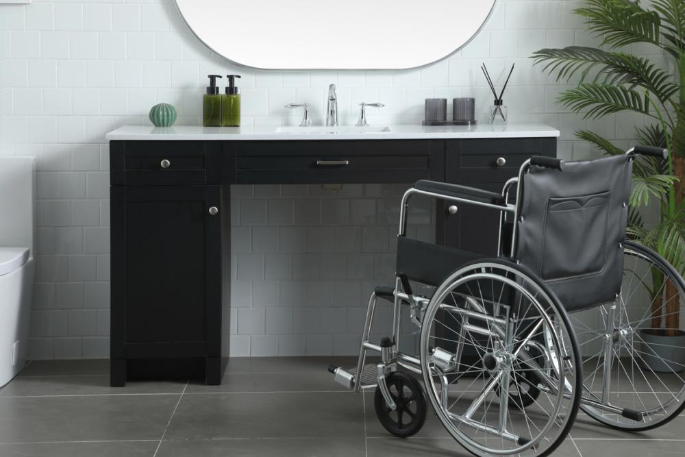 The ADA compliant sink cabinet is tailored for wheelchair access, providing a seamless and user-friendly experience for all.