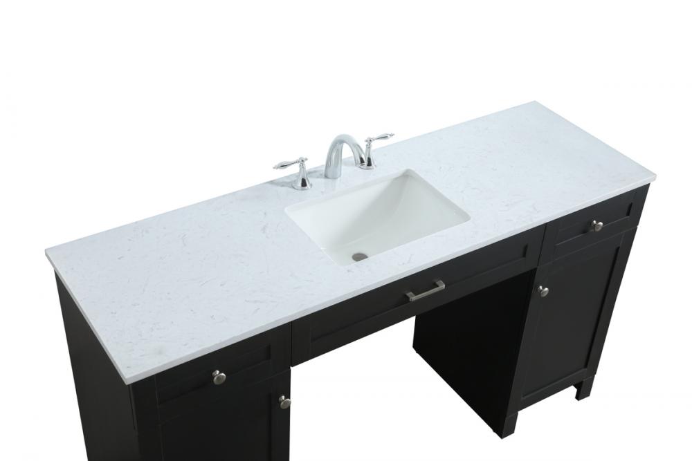 Immerse yourself in luxury with the undermount porcelain sink, elegantly paired with a durable Calacatta look engineered marble stone top. This combination not only exudes sophistication but also promises lasting durability.