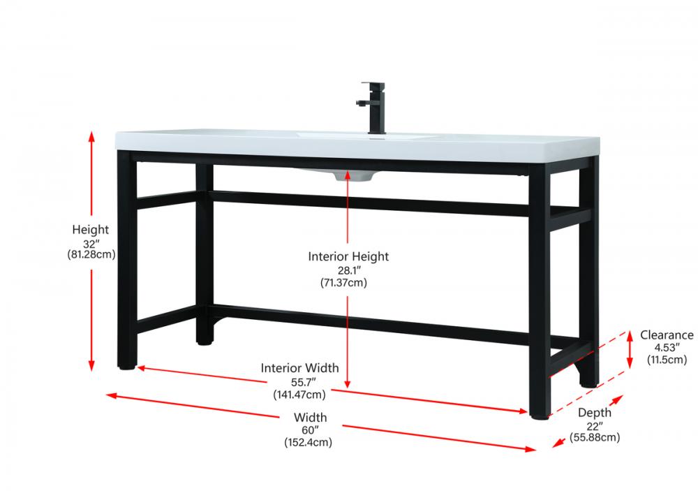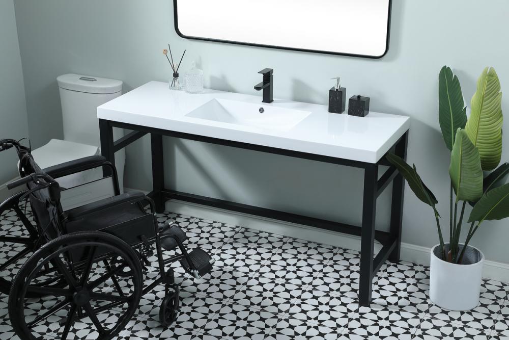 60 inch ADA compliant Single bathroom metal vanity in black