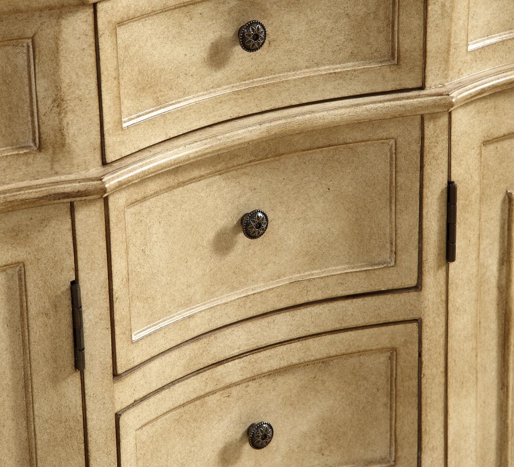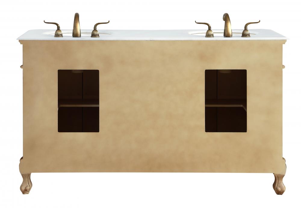 This superb balance of timeless tradition and opulent beauty in a engineered marble-topped vanity will certainly enhance the aesthetics of any home or office bathroom! Featuring an ivory white durable engineered marble countertop complimenting the hand painted cabinet with a delicate carved floral design, stands on stylishly carved solid wood French scroll feet. Don't let the design fool you, the engineered marble countertop and porcelain undermount sink allows for space to get ready, while the antique bronze hardware allows you to discover storage spaces with ease. You and your guests will marvel at this vanity that will both store away your bathroom essentials and enhance the aesthetics of your room.