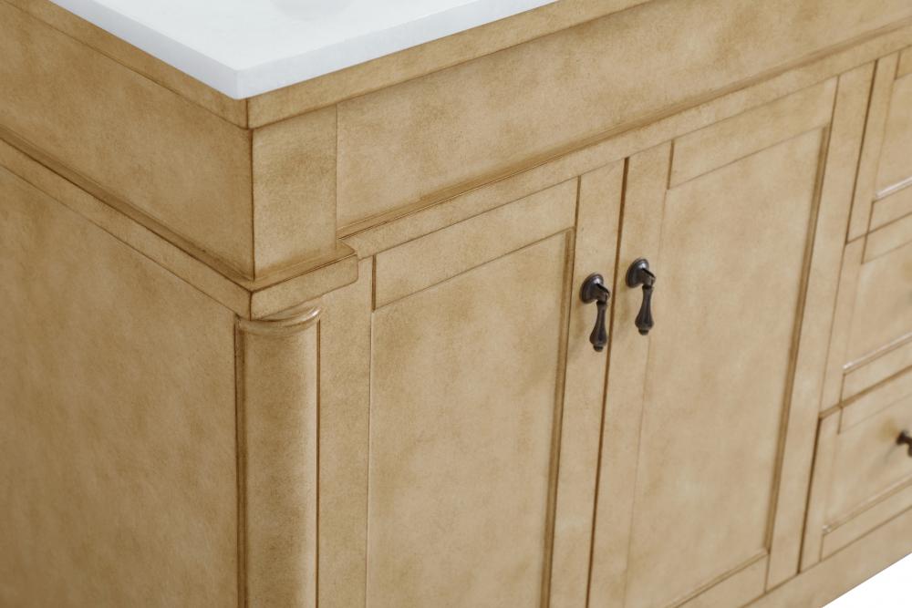 The subtle beauty of the Lexington collection exudes comfortable luxury. Its modern, yet traditional beauty will surely dress up your bathroom or powder room without any fuss. The ivory white engineered marble countertop with a porcelain undermount sink shows quiet opulence, and the legs support upright without fail. Durable hardware complements the refined hand painted finish, with pulls adorning the two cabinet doors and ornate knobs dressing the drawers, showcasing ample storage space within. Whether this vanity is in your bathroom or for guests, its presence will surely elevate the aesthetics of your room.