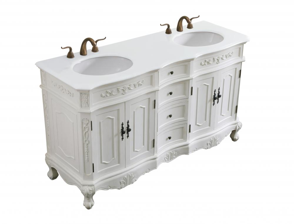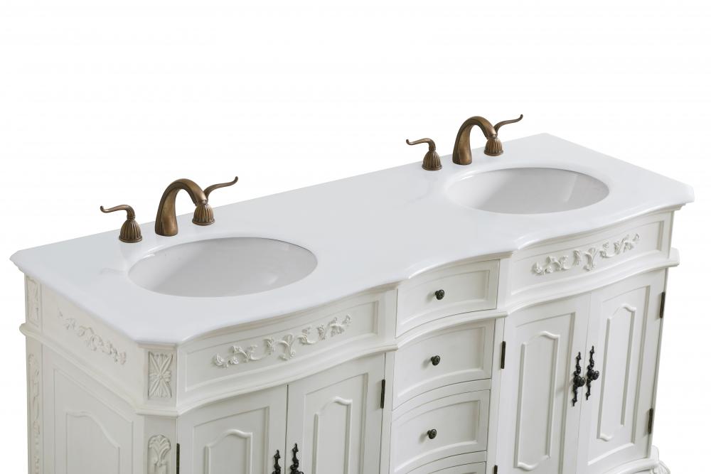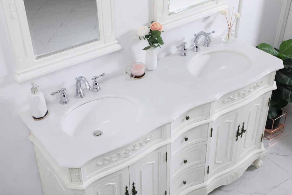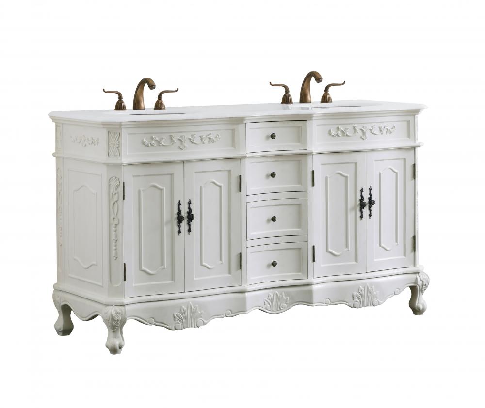 60 inch Double Bathroom vanity in antique white with ivory white engineered marble