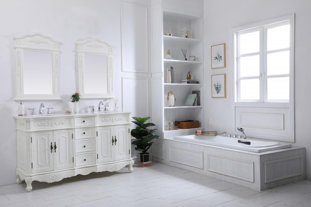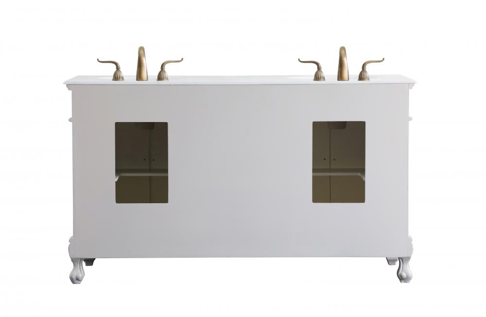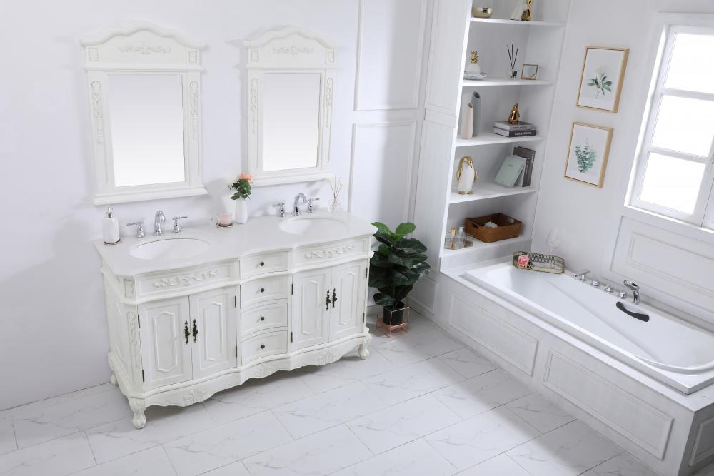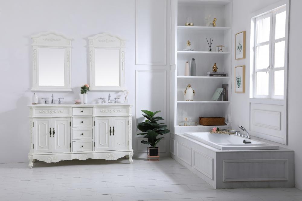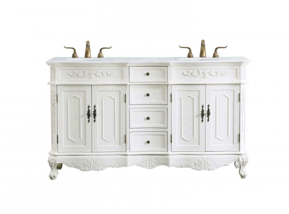 60 inch Double Bathroom vanity in antique white with ivory white engineered marble