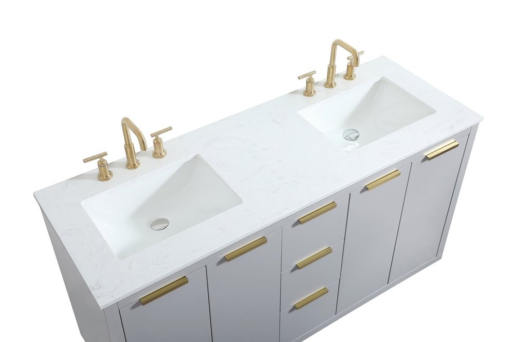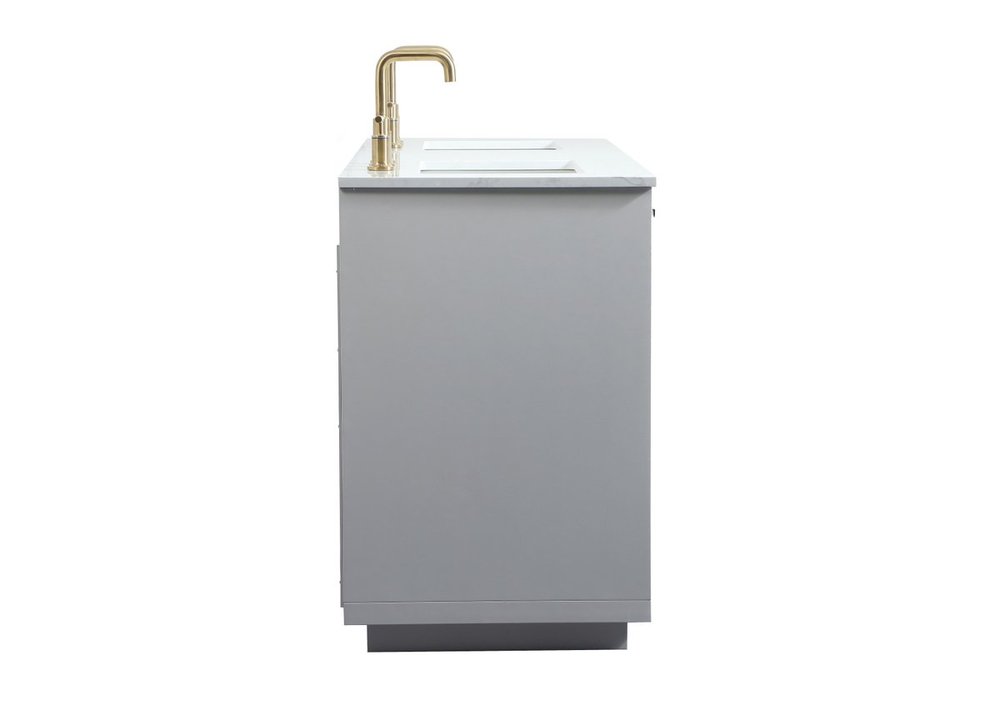 The Blake collection vanity cabinet will be a modern furniture statement piece in your bathroom. Our color combination creates a calming atmosphere in the room. The gold handles bring a vibrant touch to balance the vanity. With the simplistic clean lines, the cabinet catches eyes with its beautiful smooth surface. Open the cabinet doors to store what you desire and make use of the spacious area. Gently close the door and the soft closing glides will quietly closes the door. To top it off, the calacatta engineered marble adds a luxury and modern finish to the durable stonetop.