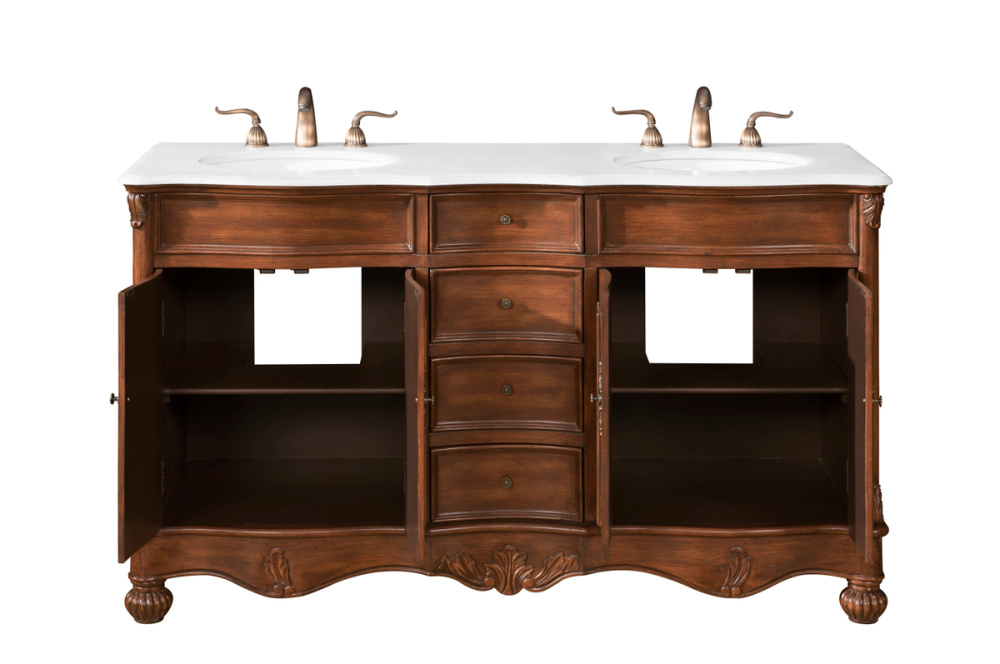 60 inch Double Bathroom vanity in Teak with ivory white engineered marble