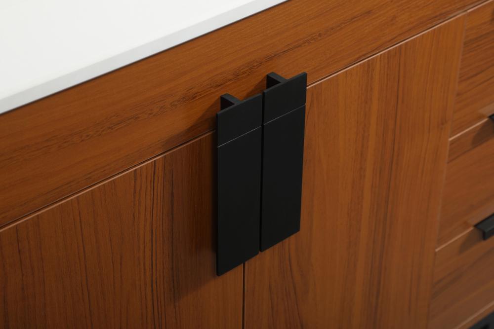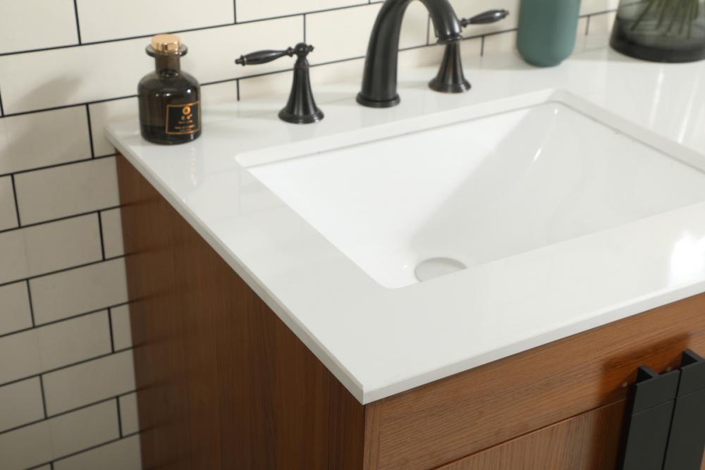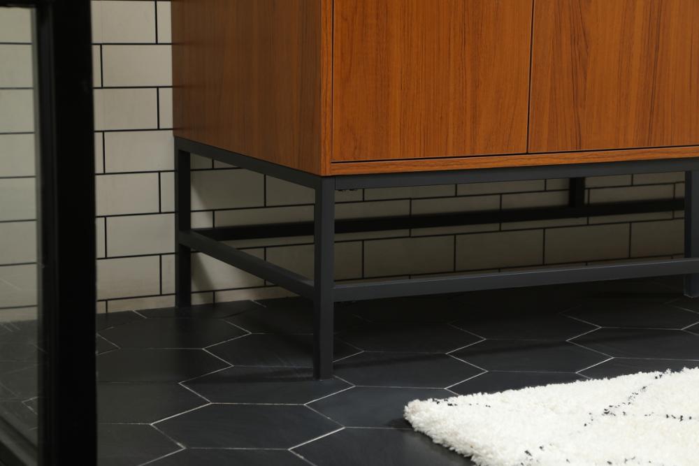 This vanity is a sleek-looking piece of bathroom furniture that is easy to incorporate into your design scheme. The cabinet features a smooth door panel with an oversized steel handle and soft close hinges provide ample room for accessories. Constructed of engineered wood, the powder-coated metal rod legs are an urban industrial look that we love. Minor assembly of the metal legs needed to get this vanity up and running.