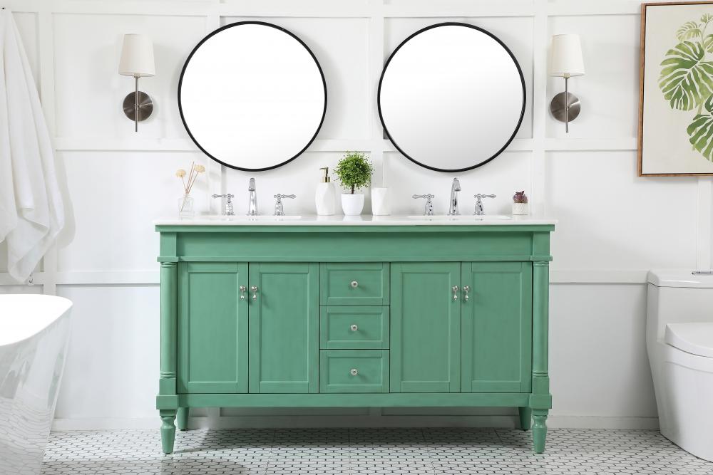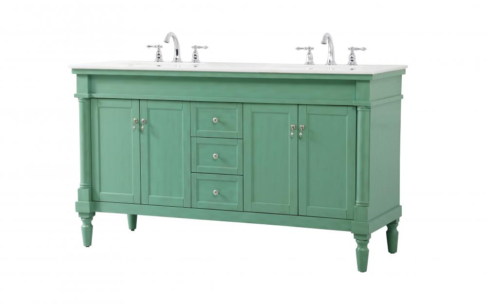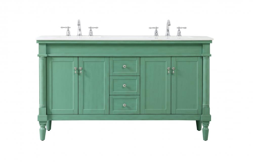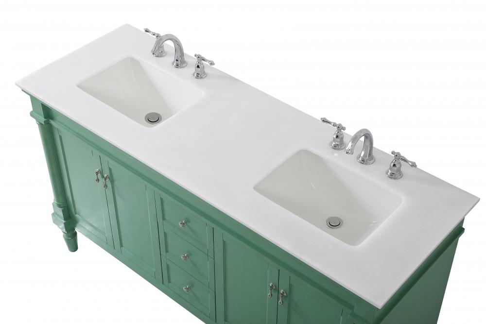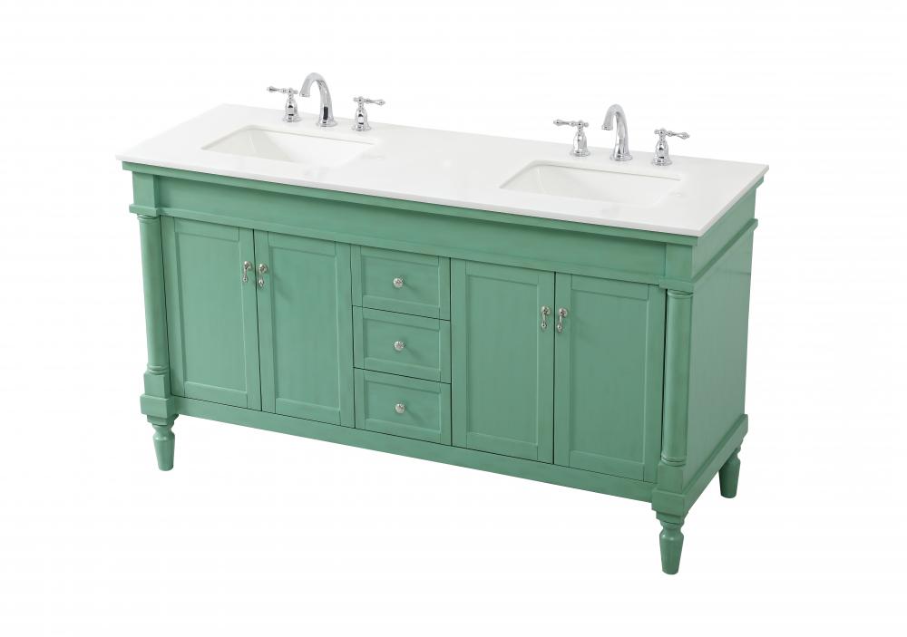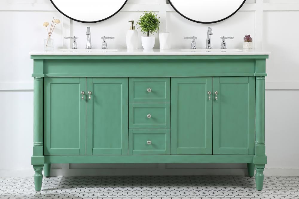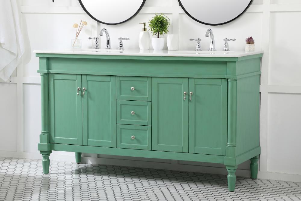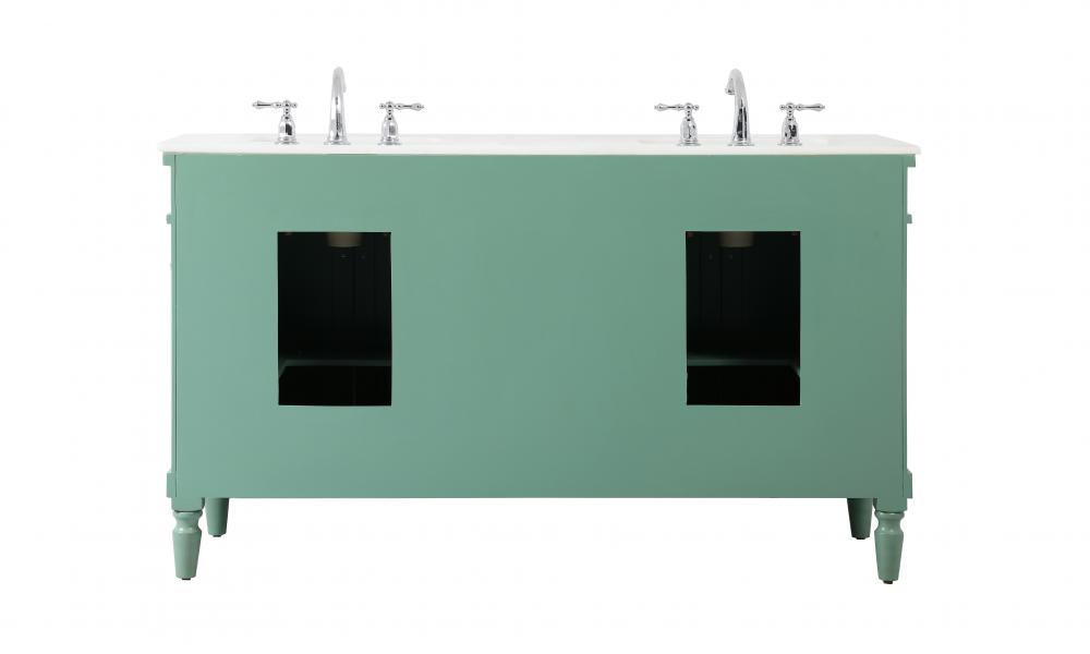 60 inch double Bathroom vanity in vintage mint with ivory white engineered marble