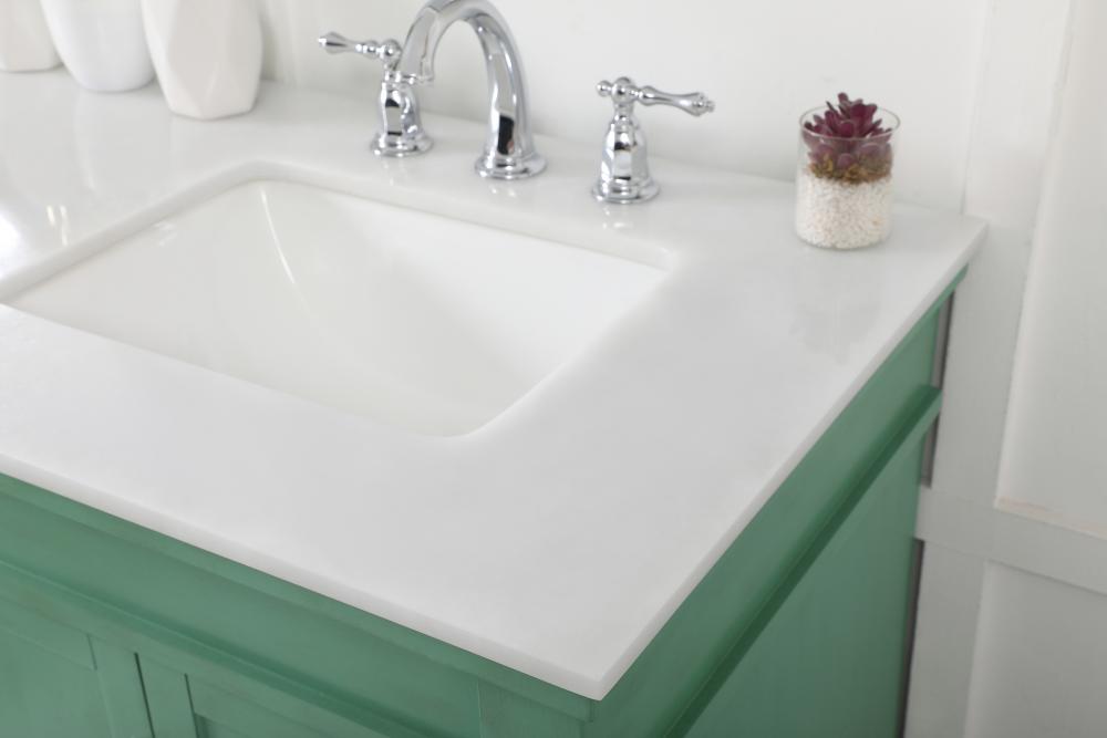 Designed with an ivory white engineered marble countertop with straight edge cut