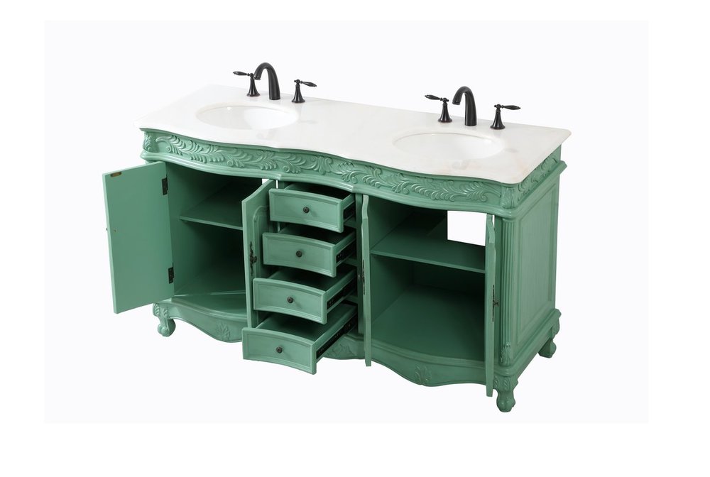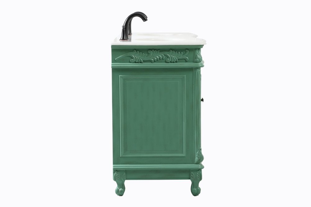 Create a refined and relaxing bath space with this traditional design vanity, presenting its ornate lines. This vanity, crafted of solid poplar wood and engineered wood panels, provides ample storage within its soft-close cabinet door, accentuated with metal hardware. Rounding out the design is an off-white marble with some brown veining in the stone. Comes with a white porcelain under-mount oval sink. Ships fully assembled.