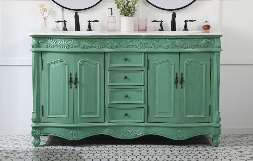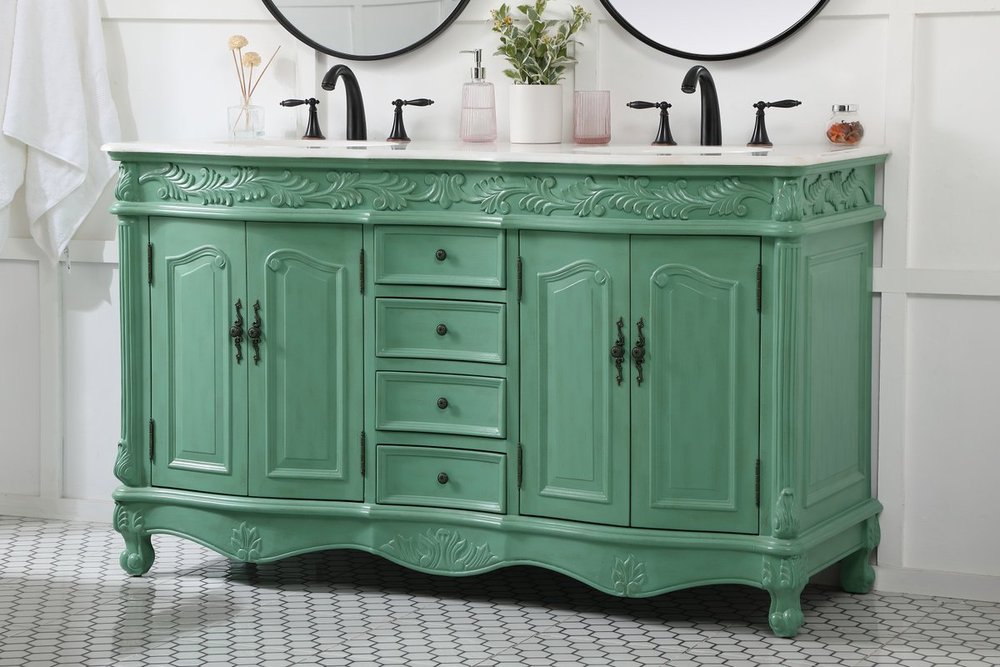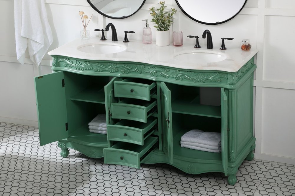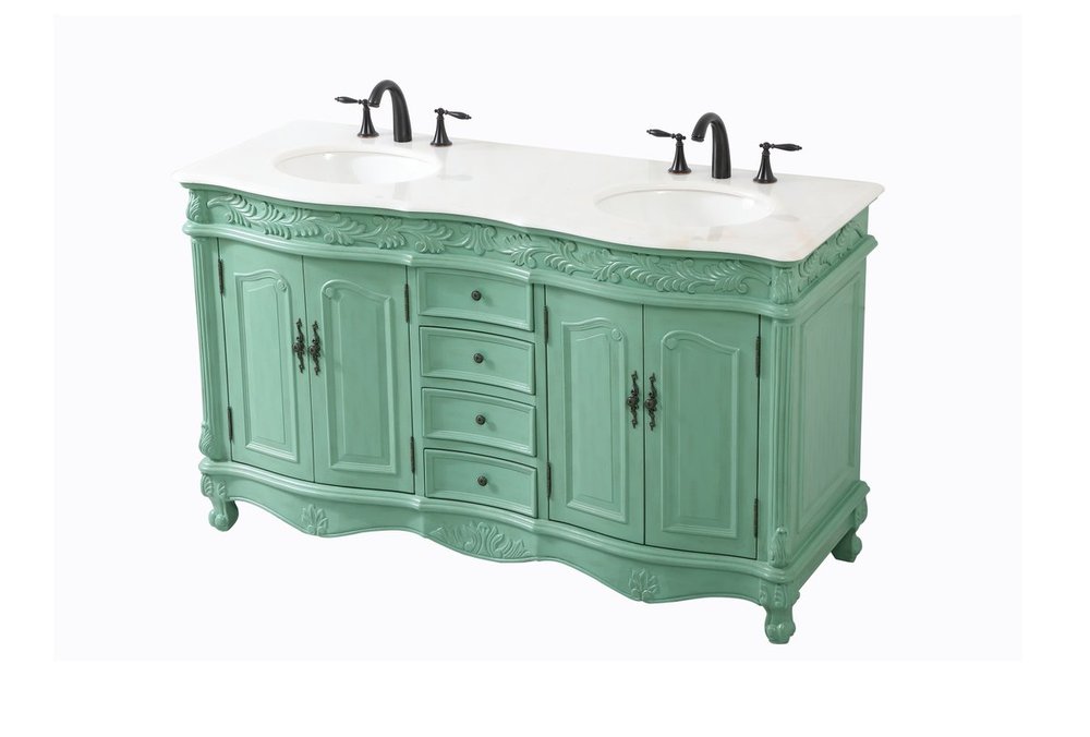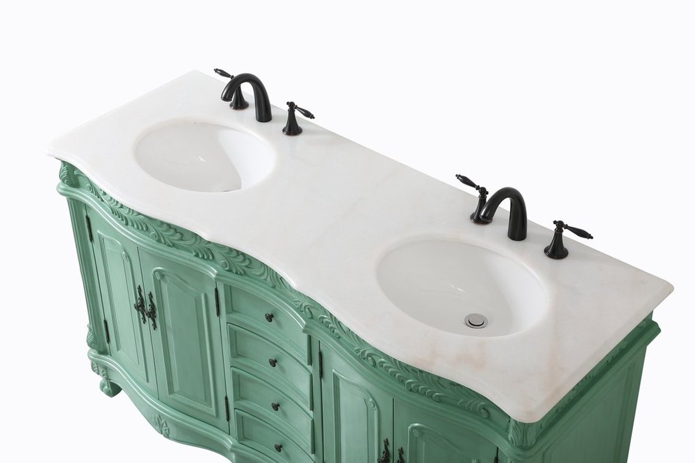 Comes with an off-white marble top with slight brown veining and bevel edge design, please note that due to the natural characteristics of the stone, the color and/or pattern of each countertop may vary from the pictures.