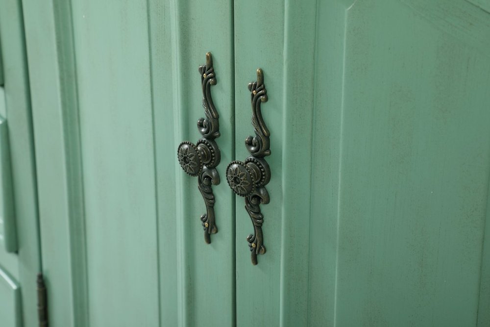 Hand painted in vintage mint finish with distress paint application