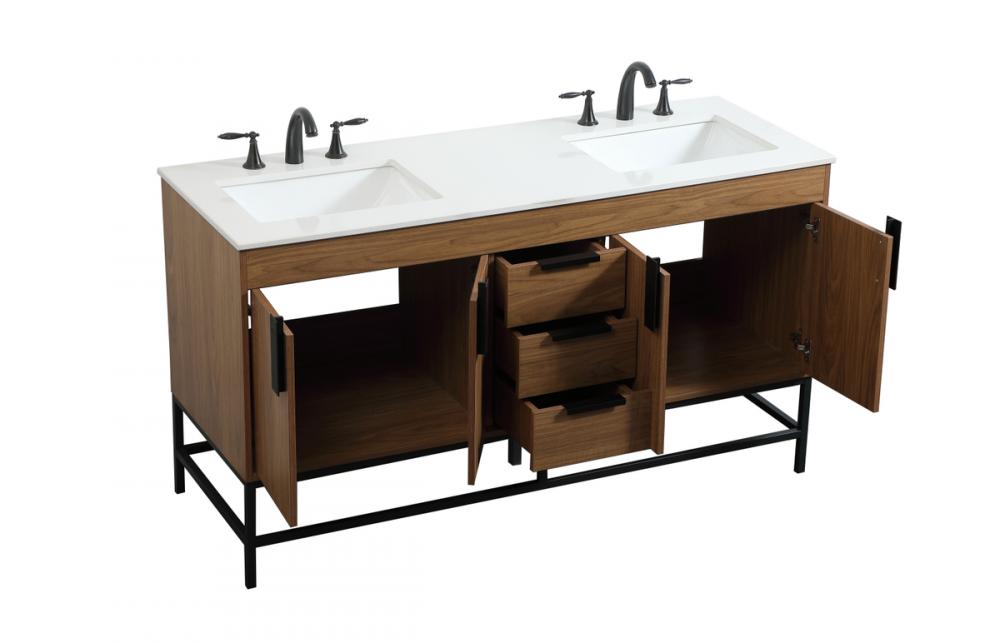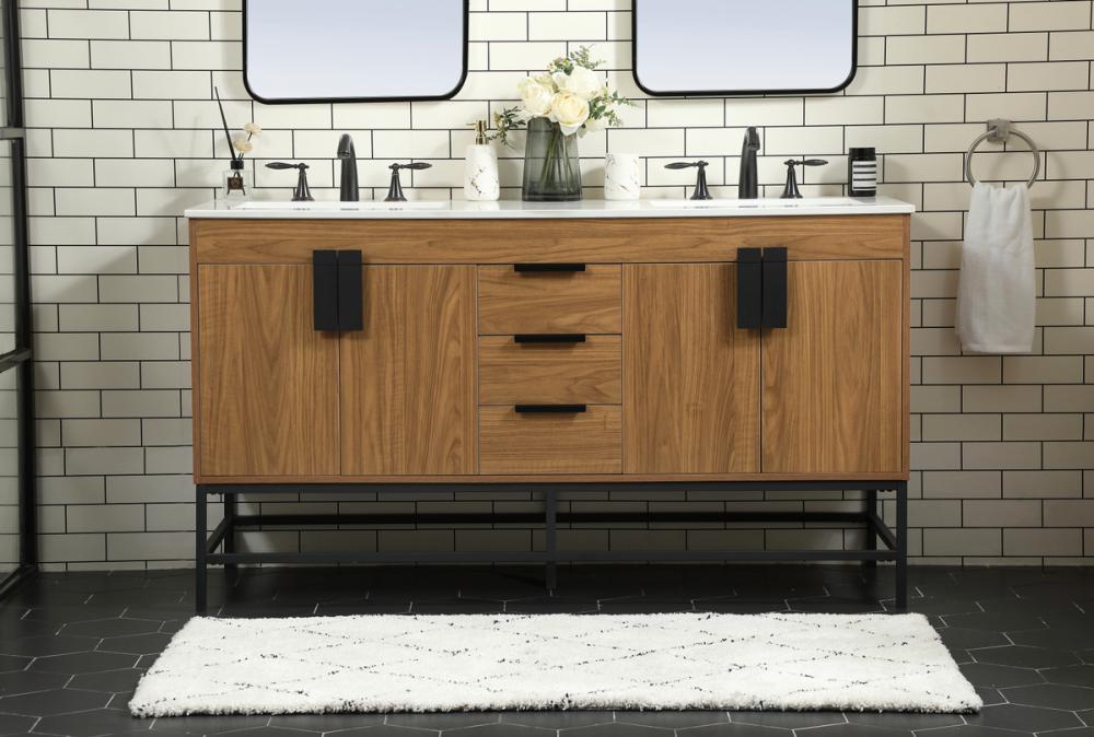 This vanity is a sleek-looking piece of bathroom furniture that is easy to incorporate into your design scheme. The cabinet features a smooth door panel with an oversized steel handle and soft close hinges provide ample room for accessories. Constructed of engineered wood, the powder-coated metal rod legs are an urban industrial look that we love. Minor assembly of the metal legs needed to get this vanity up and running.