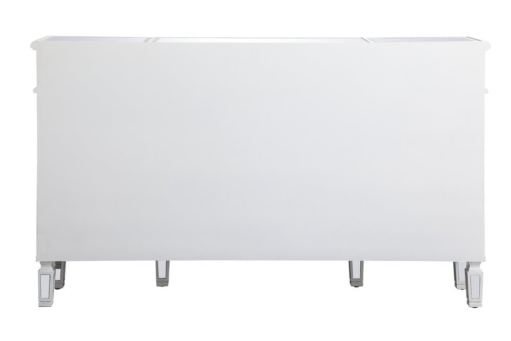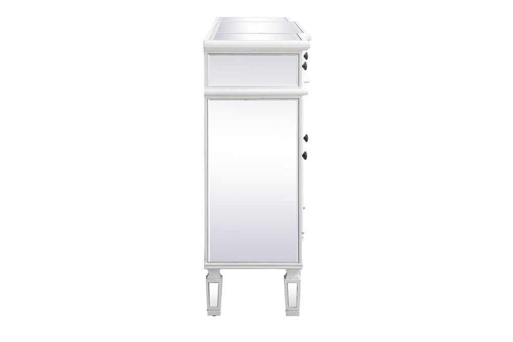 Make a striking statement with this gleaming mirrored credenza and live in the elegantly sleek future. Its contemporary style is defined by the alternating panels of polished beveled mirror panels. Its alternating panels that wrap around the entire cabinet creates an amusing design that everyone will enjoy and marvel at. Place this credenza in your home and adorn it with your favorite objects—captivating art pieces, beautiful floral arrangements, or even personal treasures like family portraits. Ships fully assembled with the exception of installing the legs.