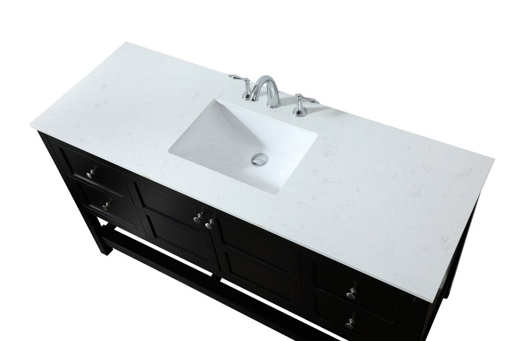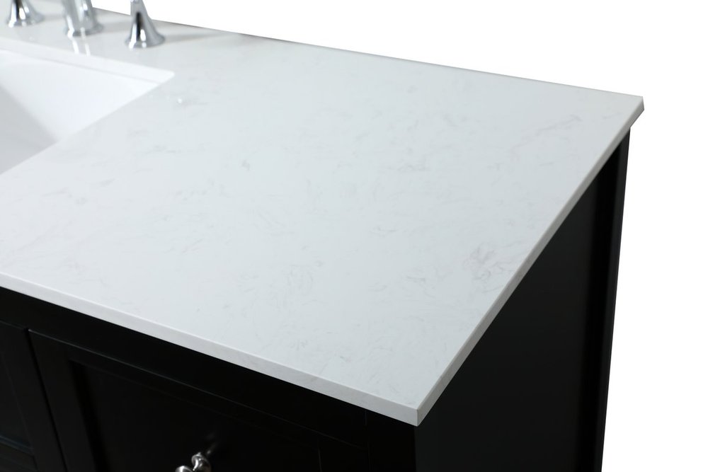 Comes with an undermount porcelain sink and a durable calacatta engineered marble stone top
