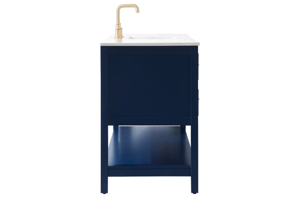 Make the most of your space with this traditional style bathroom vanity. Complements well with many aesthetics with its beautiful finish, calacatta engineered marble countertop, and the contemporary slender handle bar that sits on six functional drawers with soft closing mechanism, allowing you to store an assortment of bathroom essentials. The lower shelf makes it the perfect space to hold new towels for your guests. This compact vanity ensures both form and function in your bathroom or powder room for you and your guests.