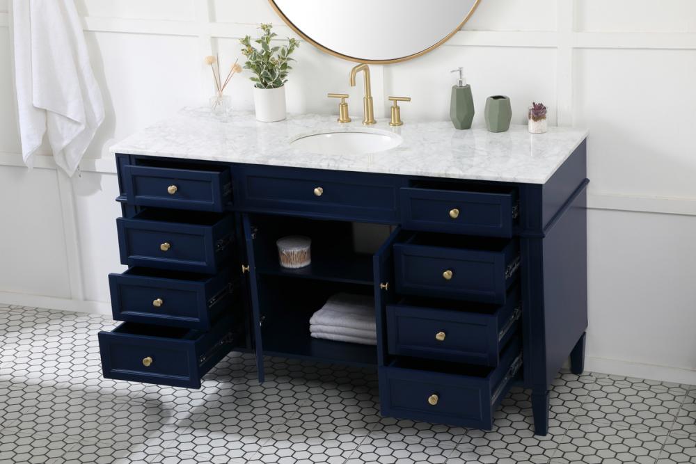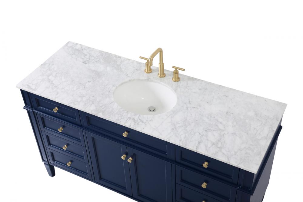 From its carrara white marble top to its contemporary style handpainted cabinet, it is sure to update your bathroom. Beneath its lustrous, natural stone marble top is an oval, white porcelain under-mount sink, removable shelf, for storing all your bathroom essentials.