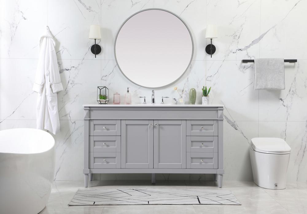 This transitional vanity is a beautiful piece of bathroom furniture will look amazing in your design scheme. The cabinet features a shaker style smooth door panel with simple round knobs and soft close hinges provide ample room for accessories. Packed with multiple side drawers with soft close glides for added comfort and full access to bath supplies. Convenient deep drawer stores all of your tall bath essentials. Constructed of engineered wood and solid wood legs with hand painted finish. The durable engineered marble countertop is a versatile material in an ivory white finish. Minor assembly of the legs needed to get this vanity up and running.