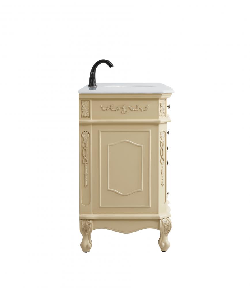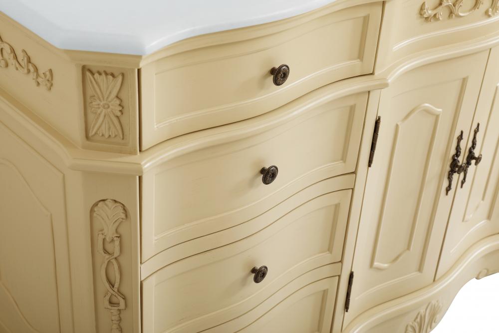 This superb balance of timeless tradition and opulent beauty in a engineered marble-topped vanity will certainly enhance the aesthetics of any home or office bathroom! Featuring an ivory white durable engineered marble countertop complimenting the hand painted cabinet with a delicate carved floral design, stands on stylishly carved solid wood French scroll feet. Don't let the design fool you, the engineered marble countertop and porcelain undermount sink allows for space to get ready, while the antique bronze hardware allows you to discover storage spaces with ease. You and your guests will marvel at this vanity that will both store away your bathroom essentials and enhance the aesthetics of your room.