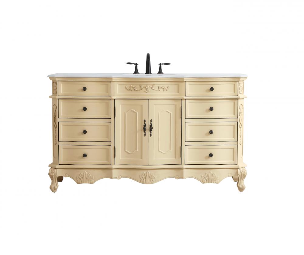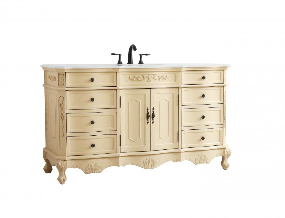 60 inch Single Bathroom vanity in Light Antique Beige with ivory white engineered marble