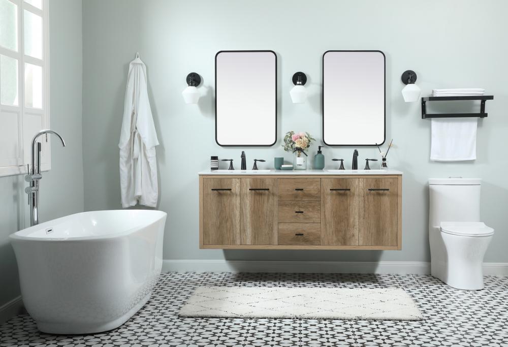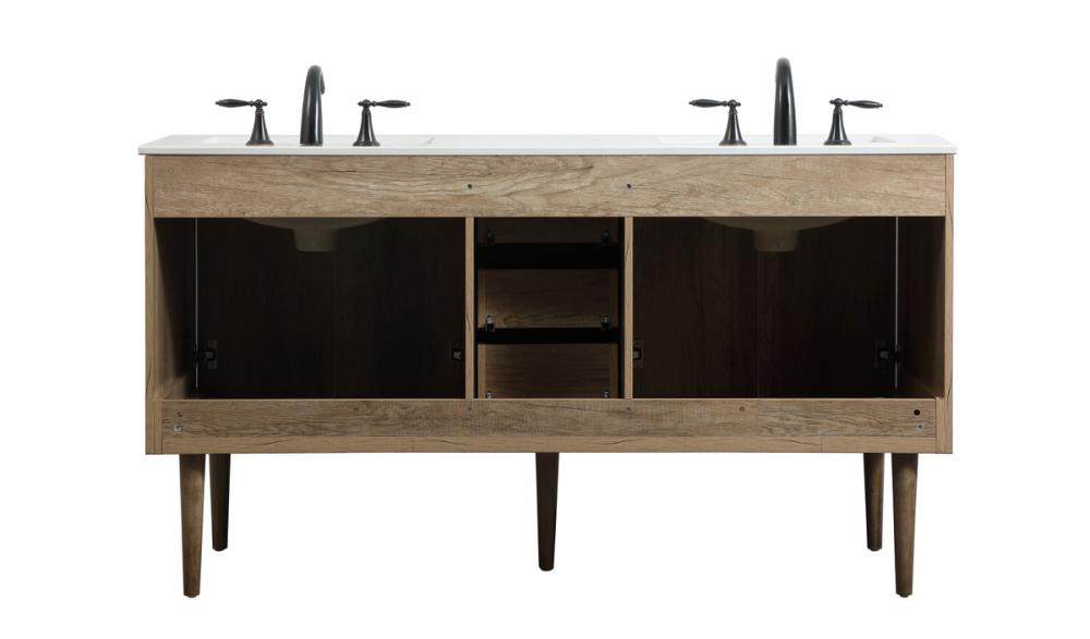 Vanity can be wall mounted without the solid wood legs or install as a freestanding unit