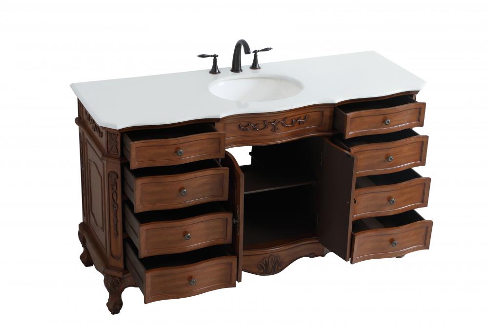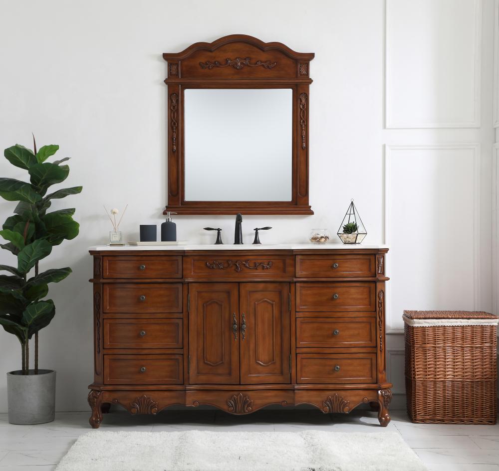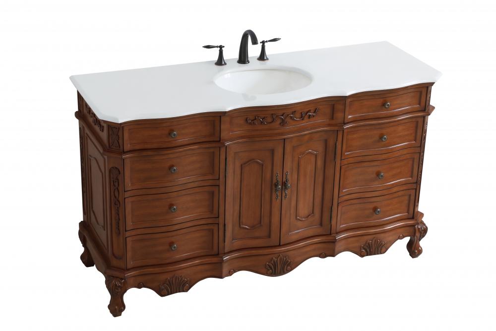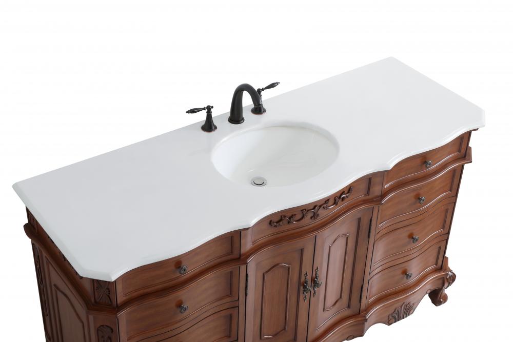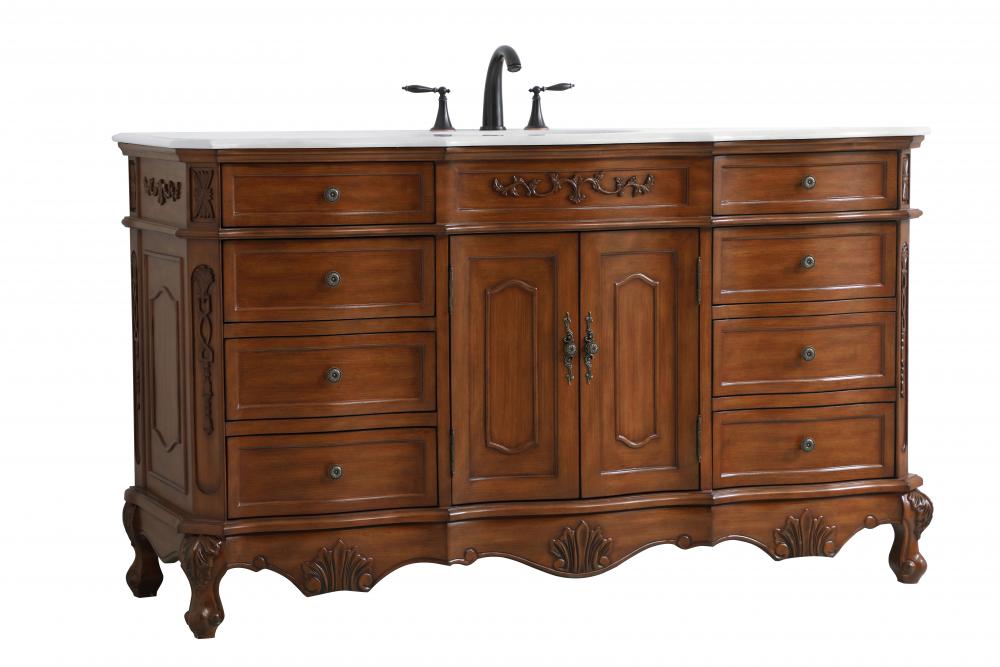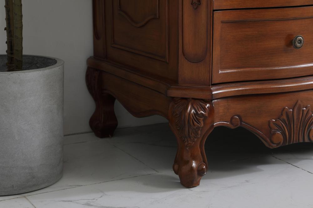 This superb balance of timeless tradition and opulent beauty in a engineered marble-topped vanity will certainly enhance the aesthetics of any home or office bathroom! Featuring an ivory white durable engineered marble countertop complimenting the hand painted cabinet with a delicate carved floral design, stands on stylishly carved solid wood French scroll feet. Don't let the design fool you, the engineered marble countertop and porcelain undermount sink allows for space to get ready, while the antique bronze hardware allows you to discover storage spaces with ease. You and your guests will marvel at this vanity that will both store away your bathroom essentials and enhance the aesthetics of your room.