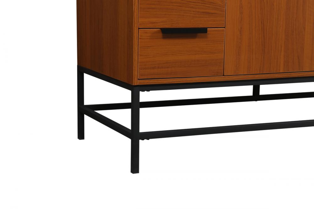 This vanity is a sleek-looking piece of bathroom furniture that is easy to incorporate into your design scheme. The cabinet features a smooth door panel with an oversized steel handle and soft close hinges provide ample room for accessories. Constructed of engineered wood, the powder-coated metal rod legs are an urban industrial look that we love. Minor assembly of the metal legs needed to get this vanity up and running.