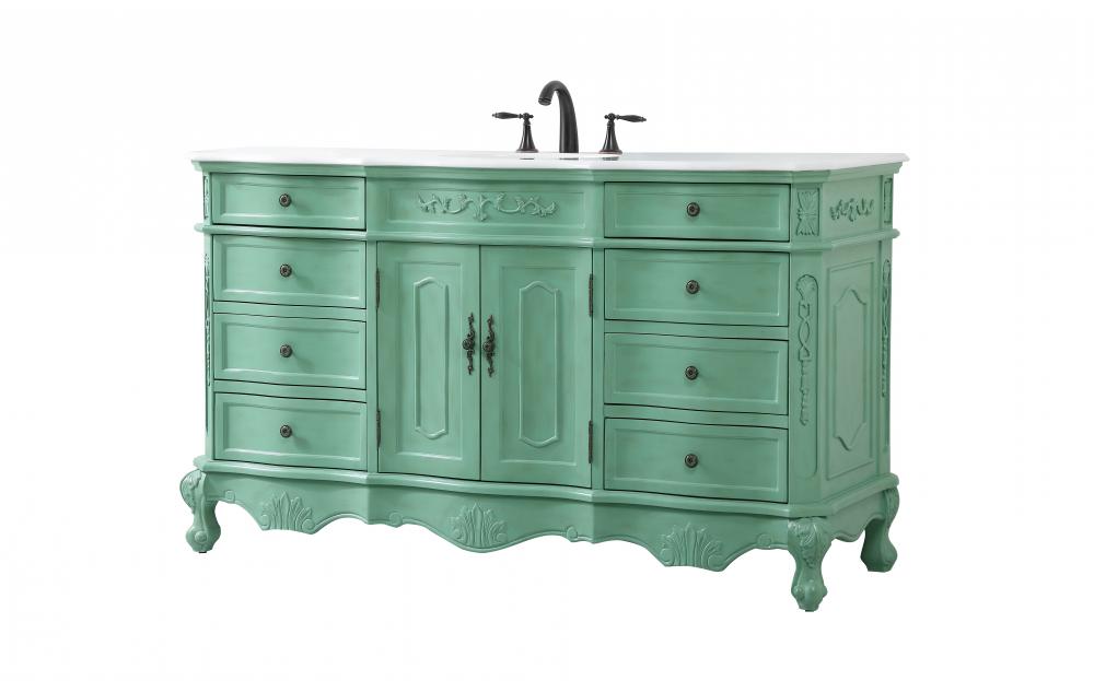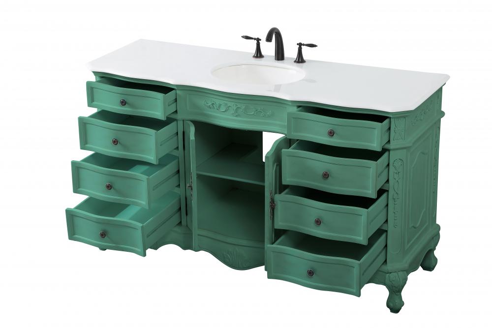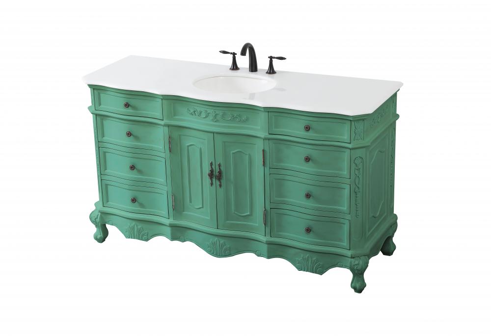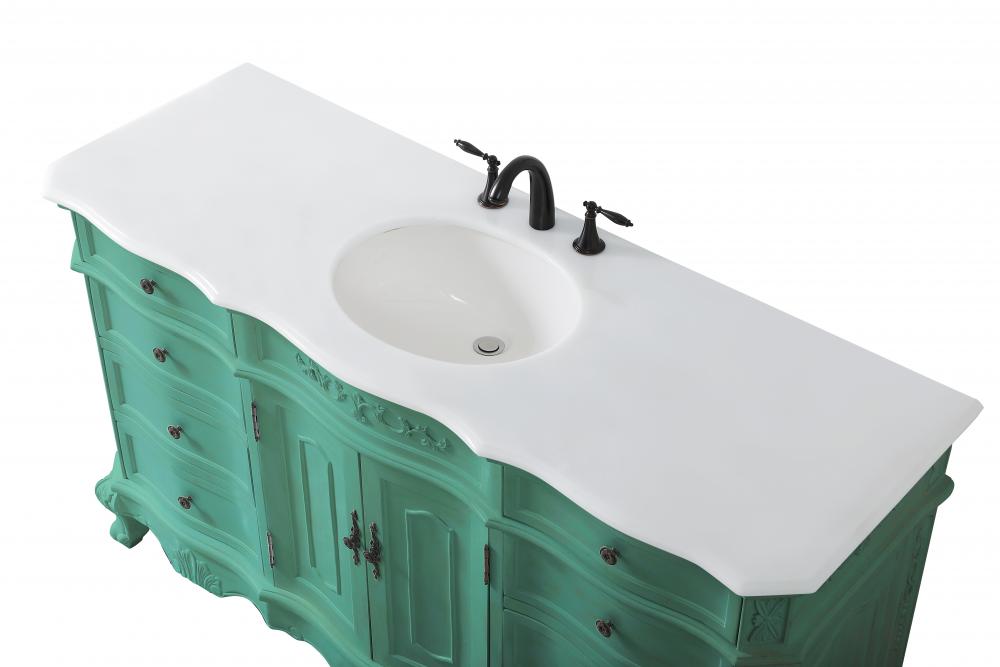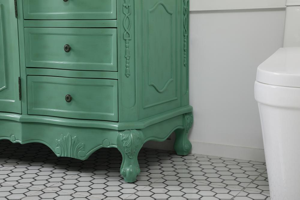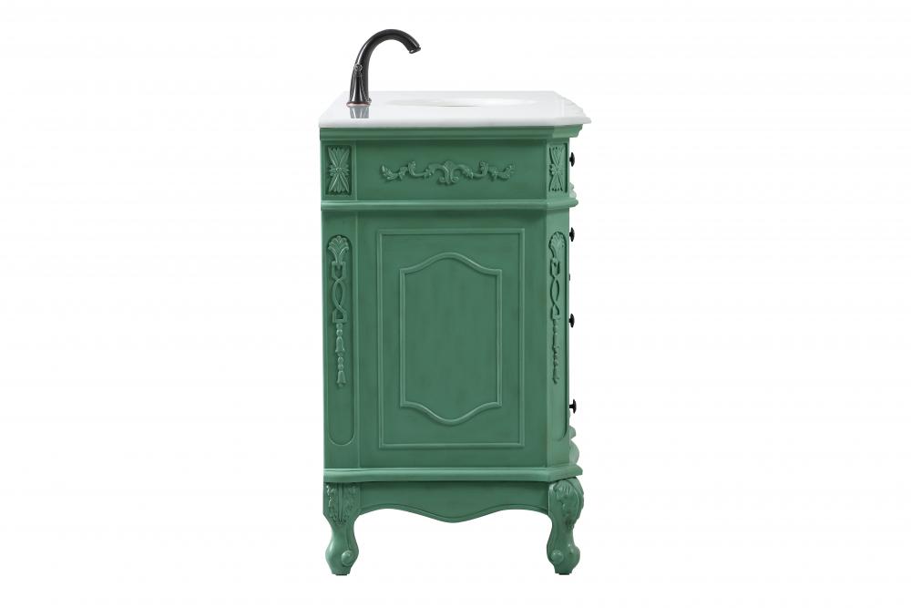 This superb balance of timeless tradition and opulent beauty in a engineered marble-topped vanity will certainly enhance the aesthetics of any home or office bathroom! Featuring an ivory white durable engineered marble countertop complimenting the hand painted cabinet with a delicate carved floral design, stands on stylishly carved solid wood French scroll feet. Don't let the design fool you, the engineered marble countertop and porcelain undermount sink allows for space to get ready, while the antique bronze hardware allows you to discover storage spaces with ease. You and your guests will marvel at this vanity that will both store away your bathroom essentials and enhance the aesthetics of your room.