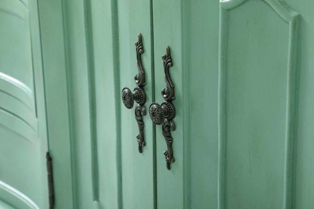 designed with cabinet doors attached to magnetic latches to secure the door shut