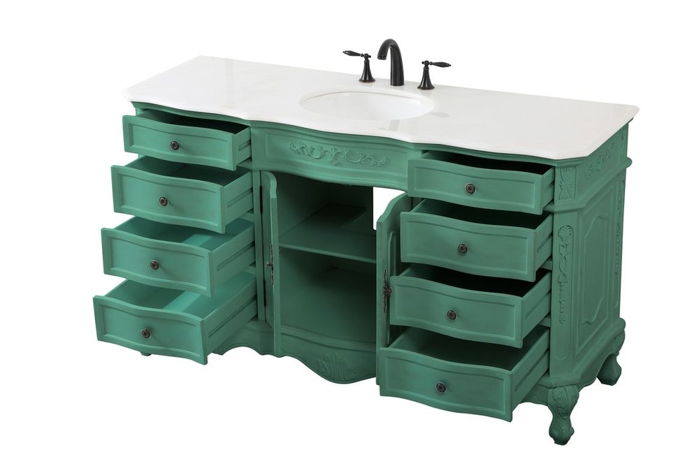 Create a refined and relaxing bath space with this traditional design vanity, presenting its ornate lines. This vanity, crafted of solid poplar wood and engineered wood panels, provides ample storage within its soft-close cabinet door, accentuated with metal hardware. Rounding out the design is an off-white marble with some brown veining in the stone. Comes with a white porcelain under-mount oval sink. Ships fully assembled.